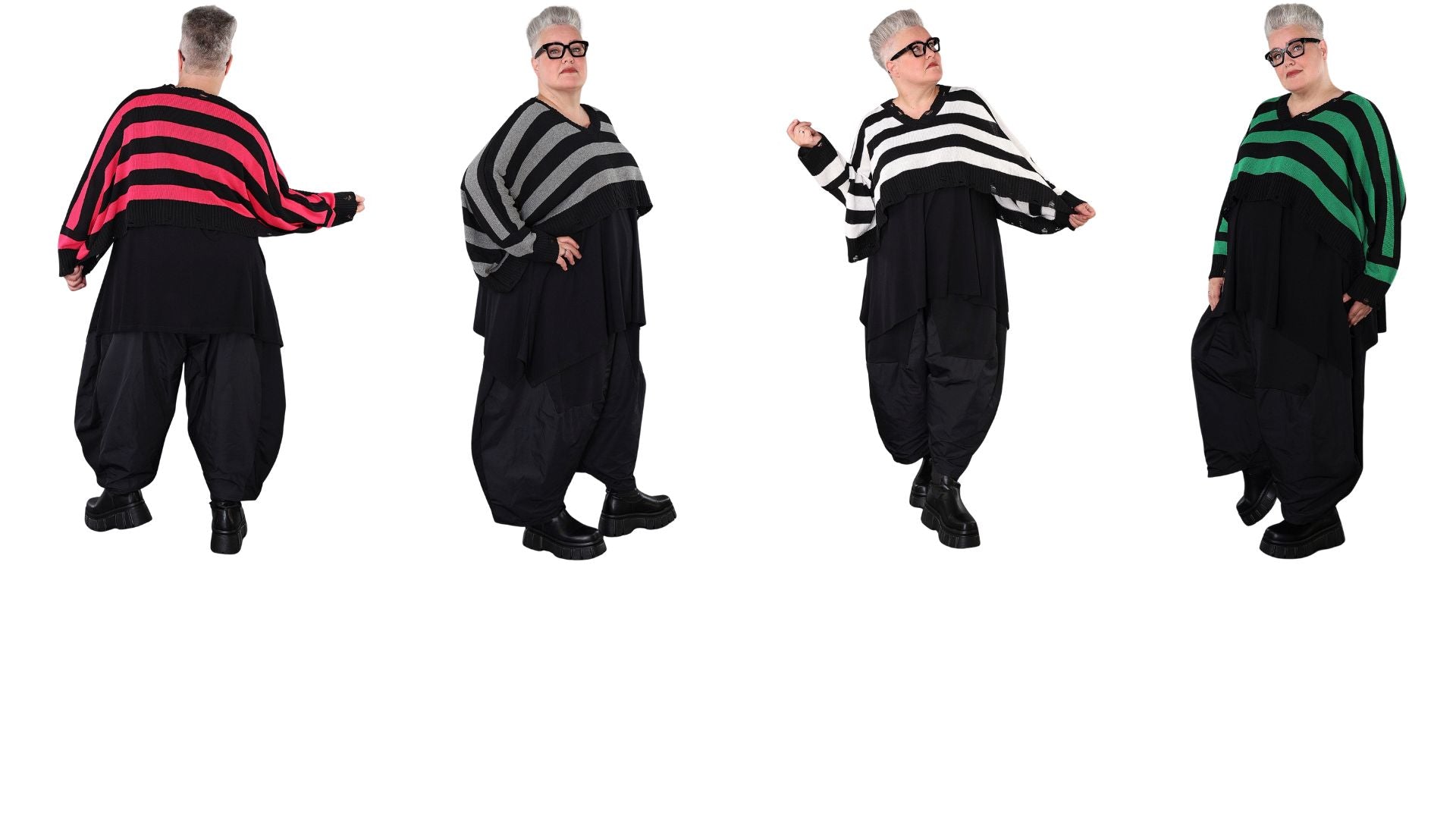 We showcase high quality ethically sourced and produced clothing in one size or oversized often known as "Langenlook"