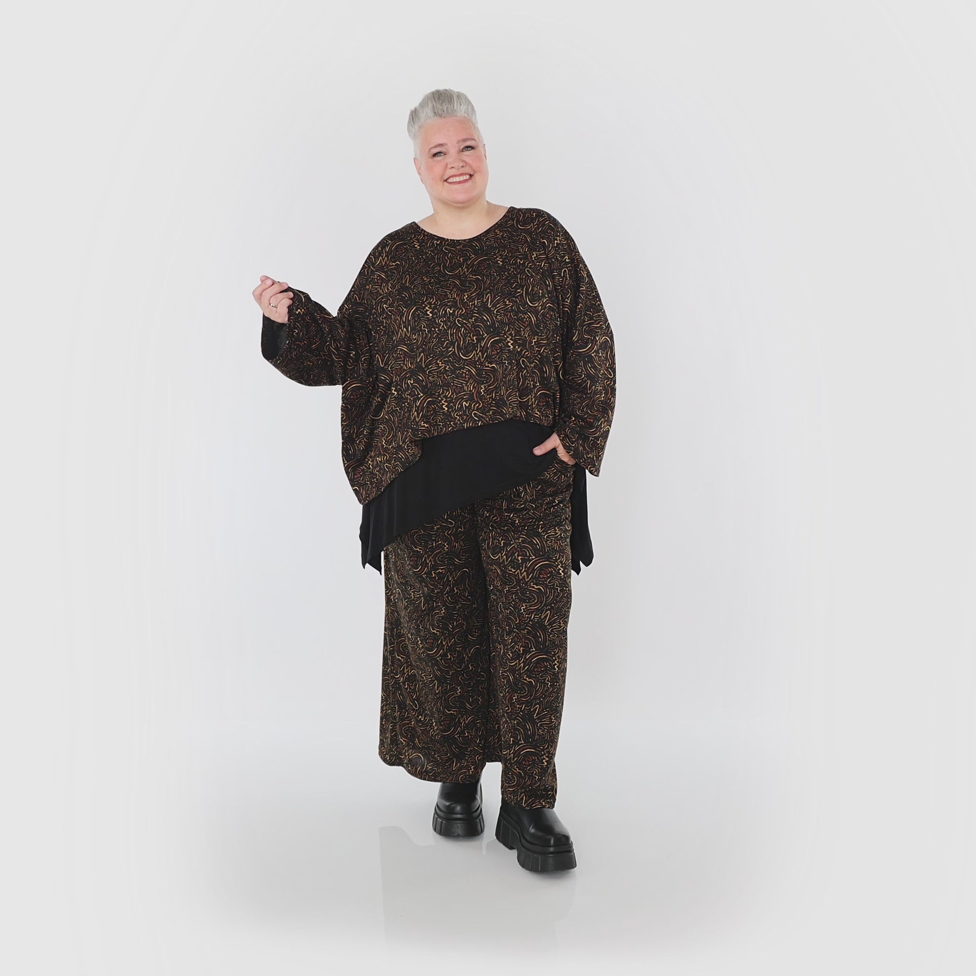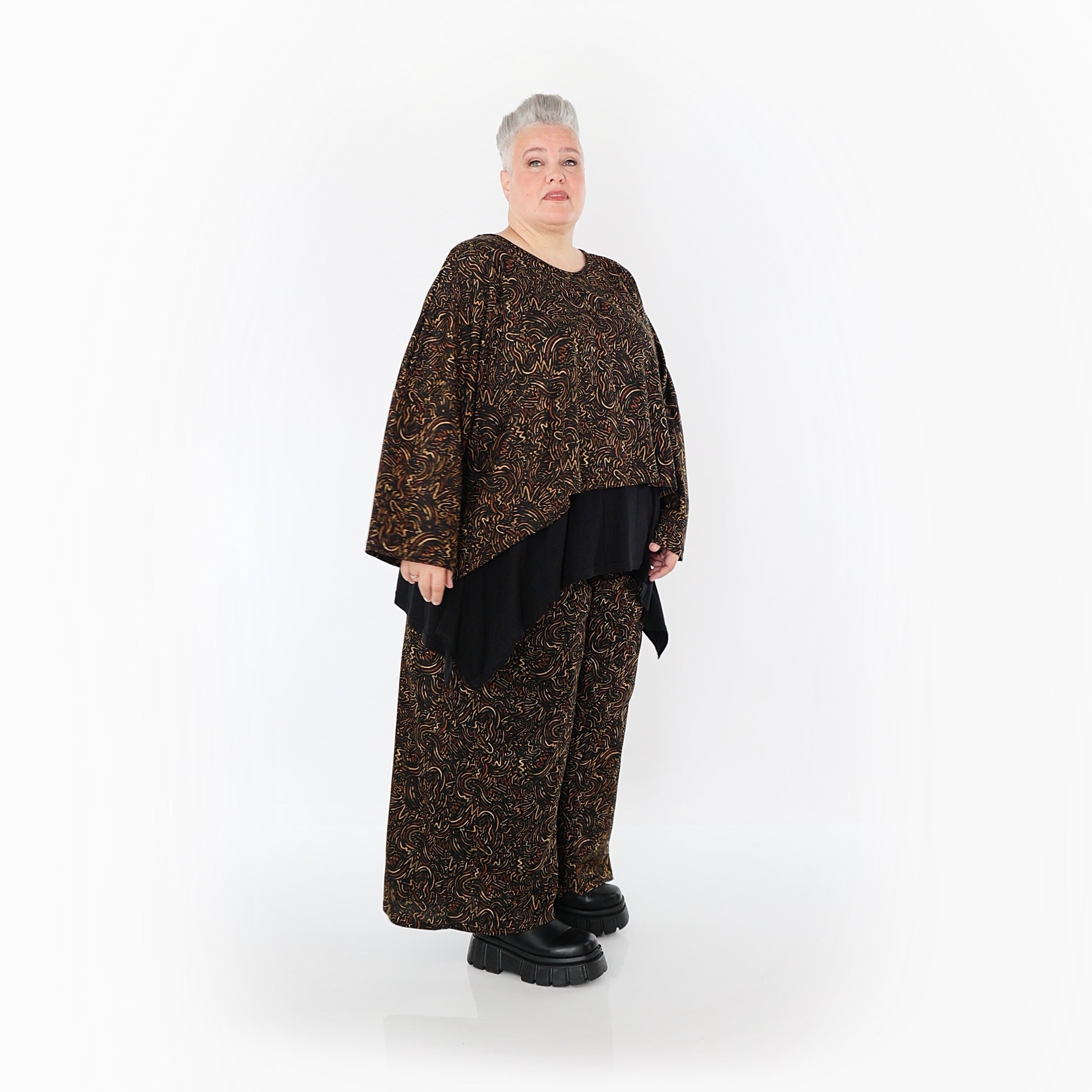 Worn by our model Regina (UK 20-24, 166cm) who can easily wear almost all AKH styles in an oversized style.