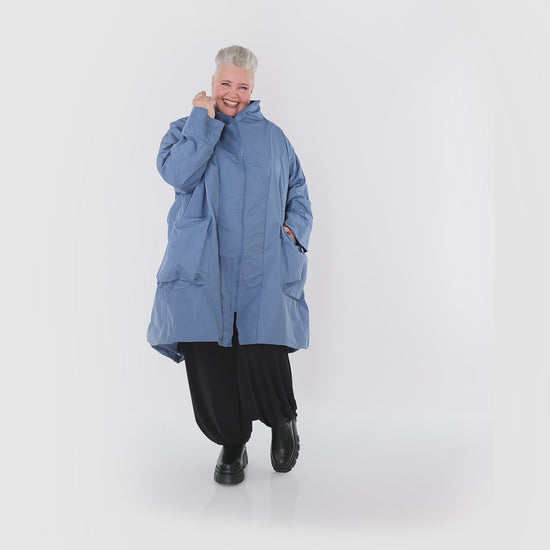 Made from soft, flowing memory taffeta in Italy's favourite shade of blue, this jacket delights with its cosy, lightly lined feel. Its long sleeves and chic stand-up collar bring a fresh, modern vibe, while roomy patch pockets are perfect for stashing your everyday essentials. Stylish and comfy, this jacket is ready to brighten up your daily wardrobe!