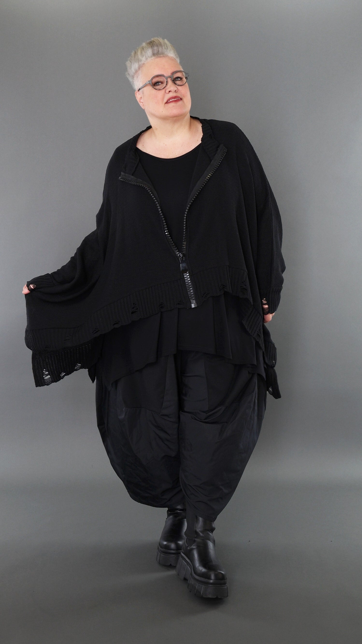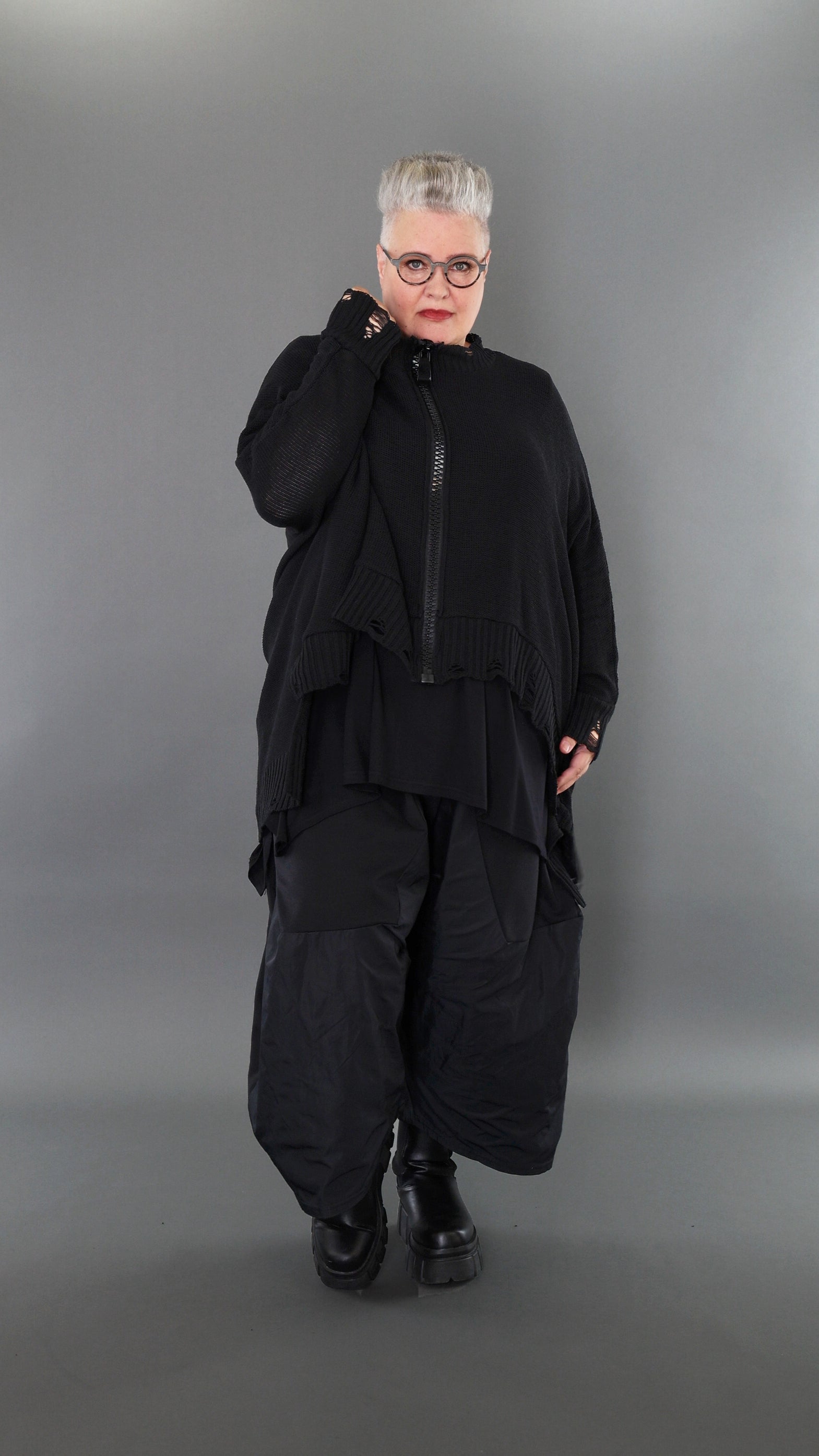Worn by our model Regina (UK 20-24, 166cm) who can easily wear almost all AKH styles in an oversized style.