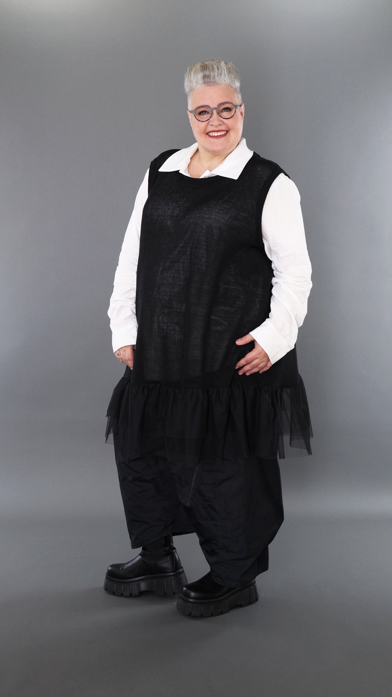 Size: One size fits all, wearable up to size 50. Total length: 97 cm. Half bust: 70 cm. Sleeve length: Sleeveless.