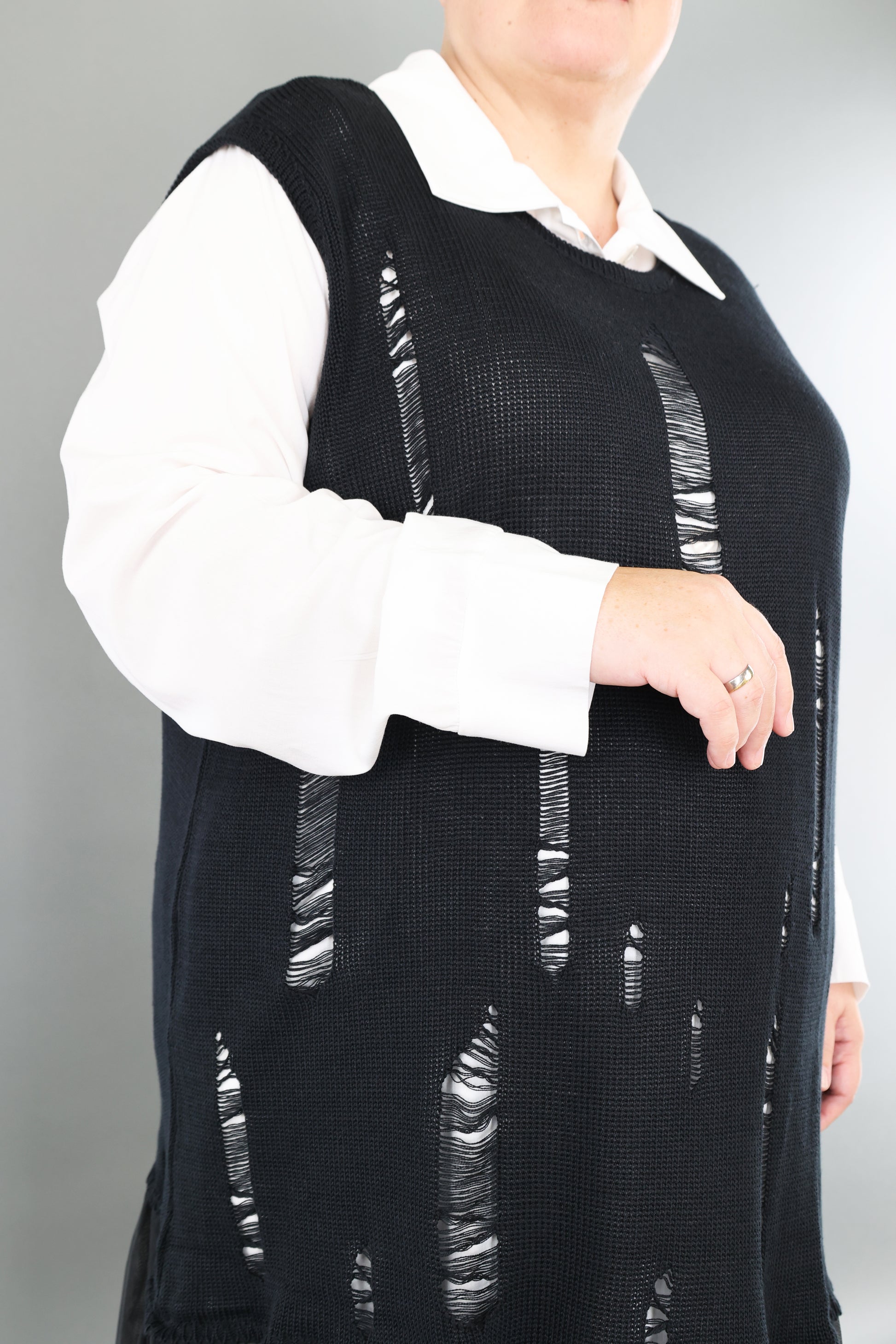 Size: One size fits all, wearable up to size 50. Total length: 118 cm. Half bust: 69 cm. Sleeve length: Sleeveless.