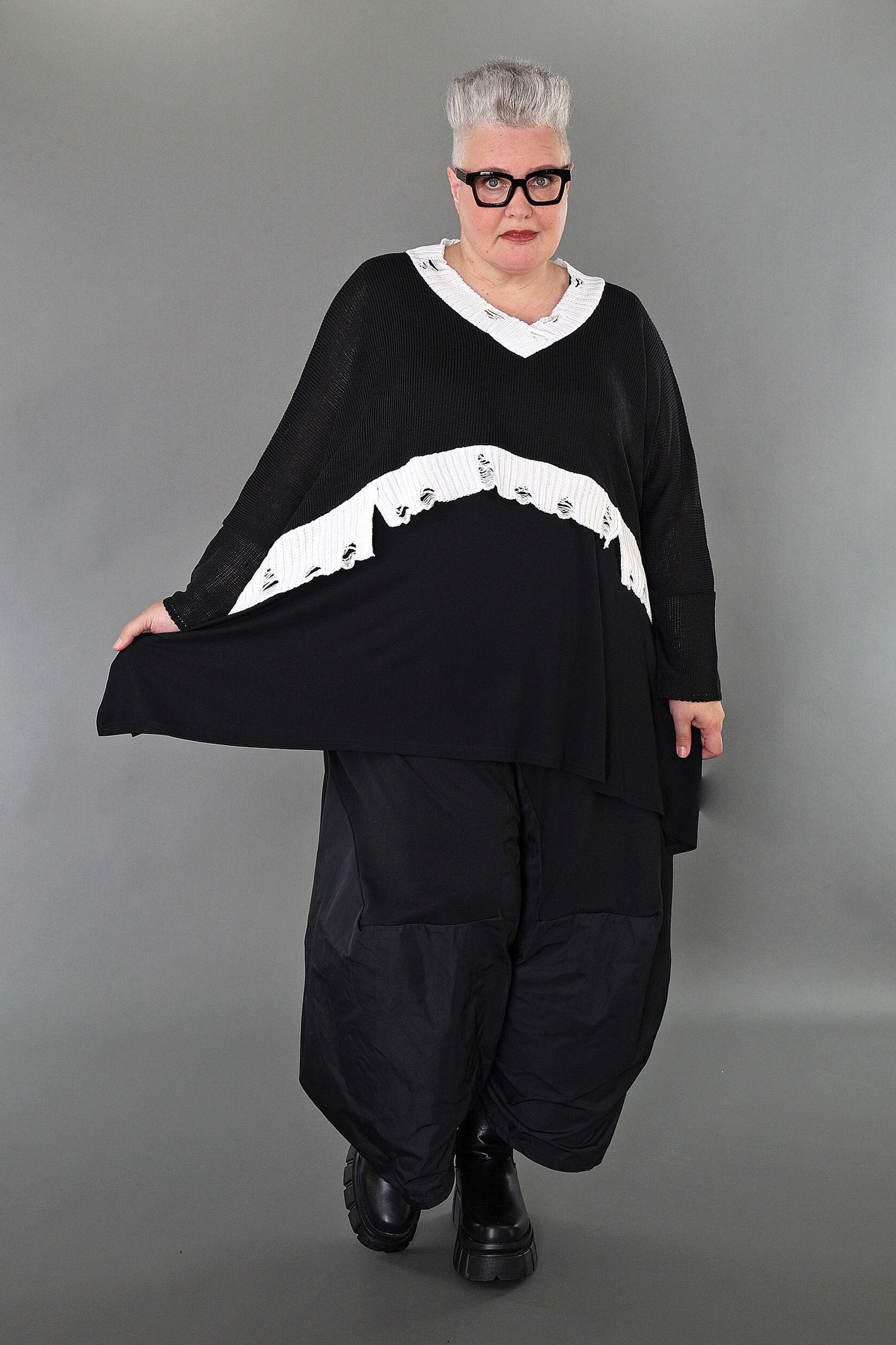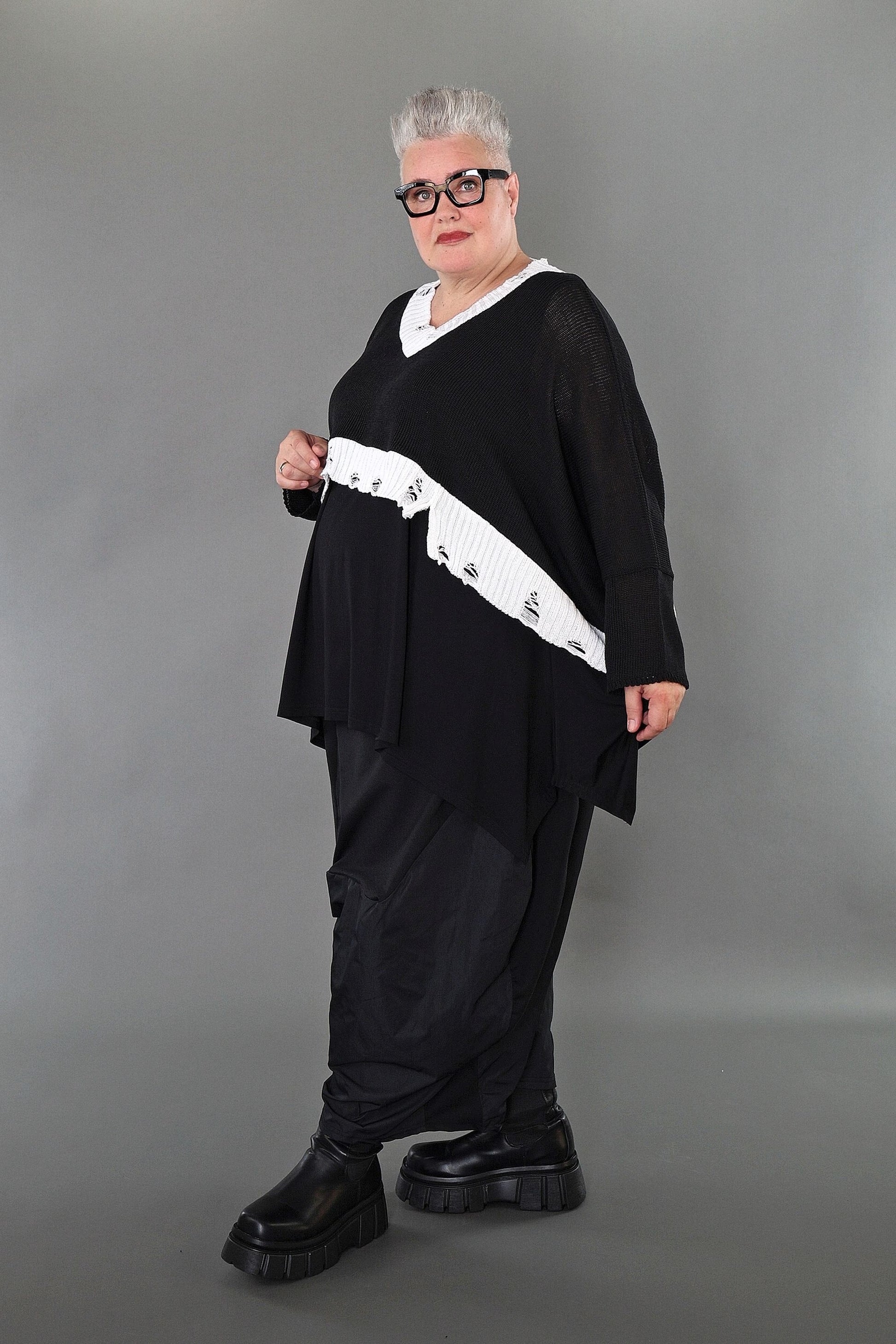 Size: One size fits all, wearable up to size 68. Total length: 46 cm. Half bust: 114 cm. Sleeve length: long sleeves.