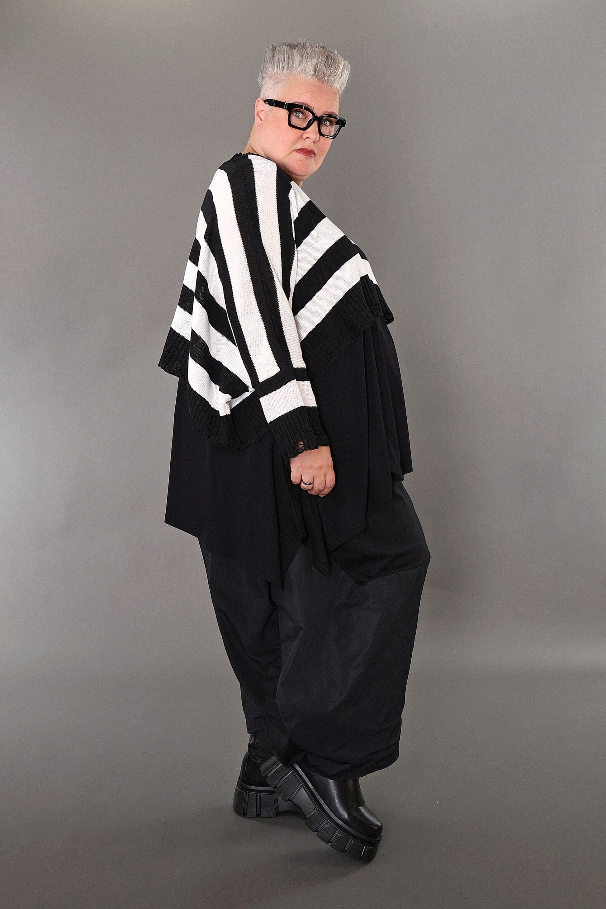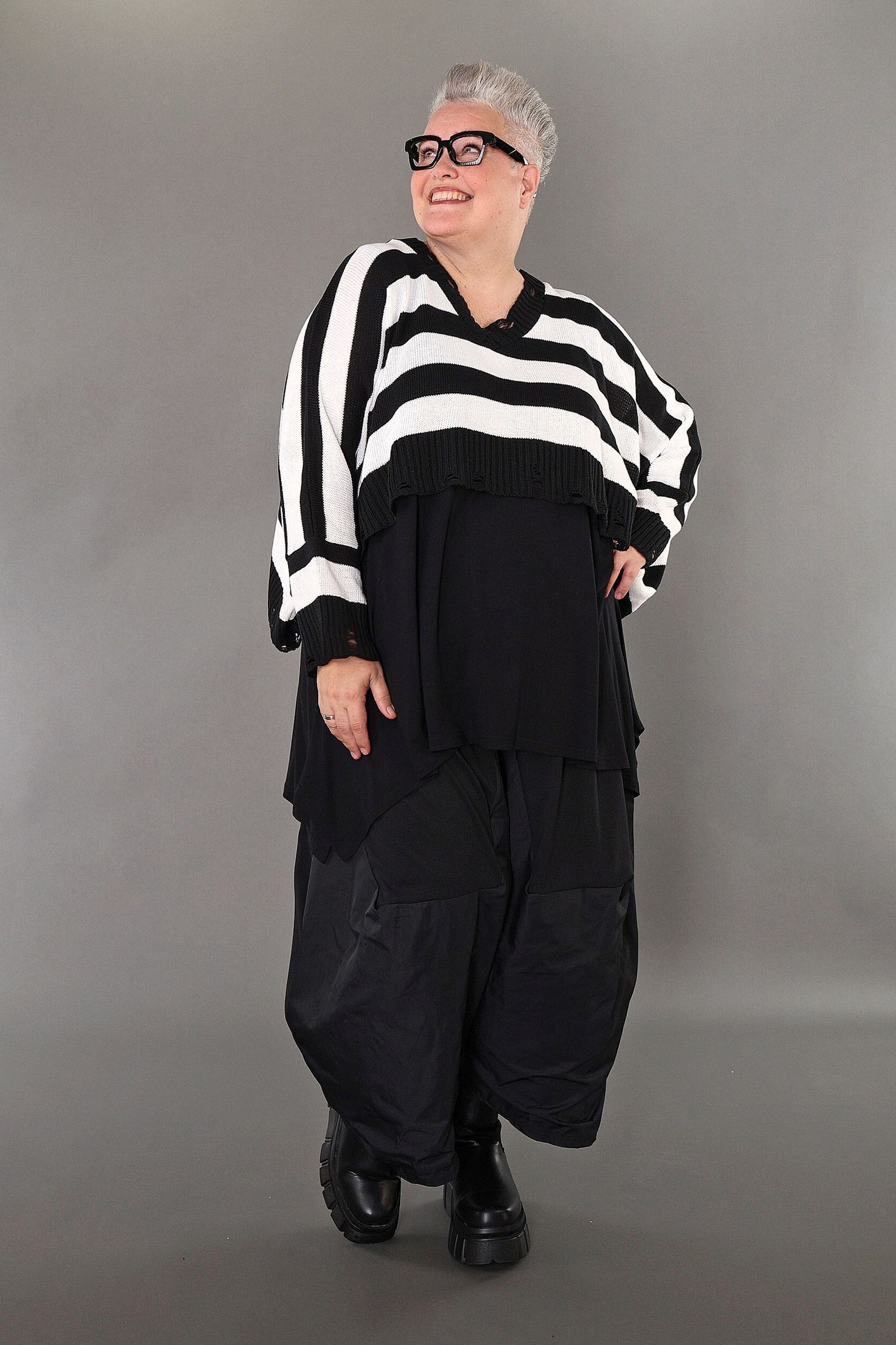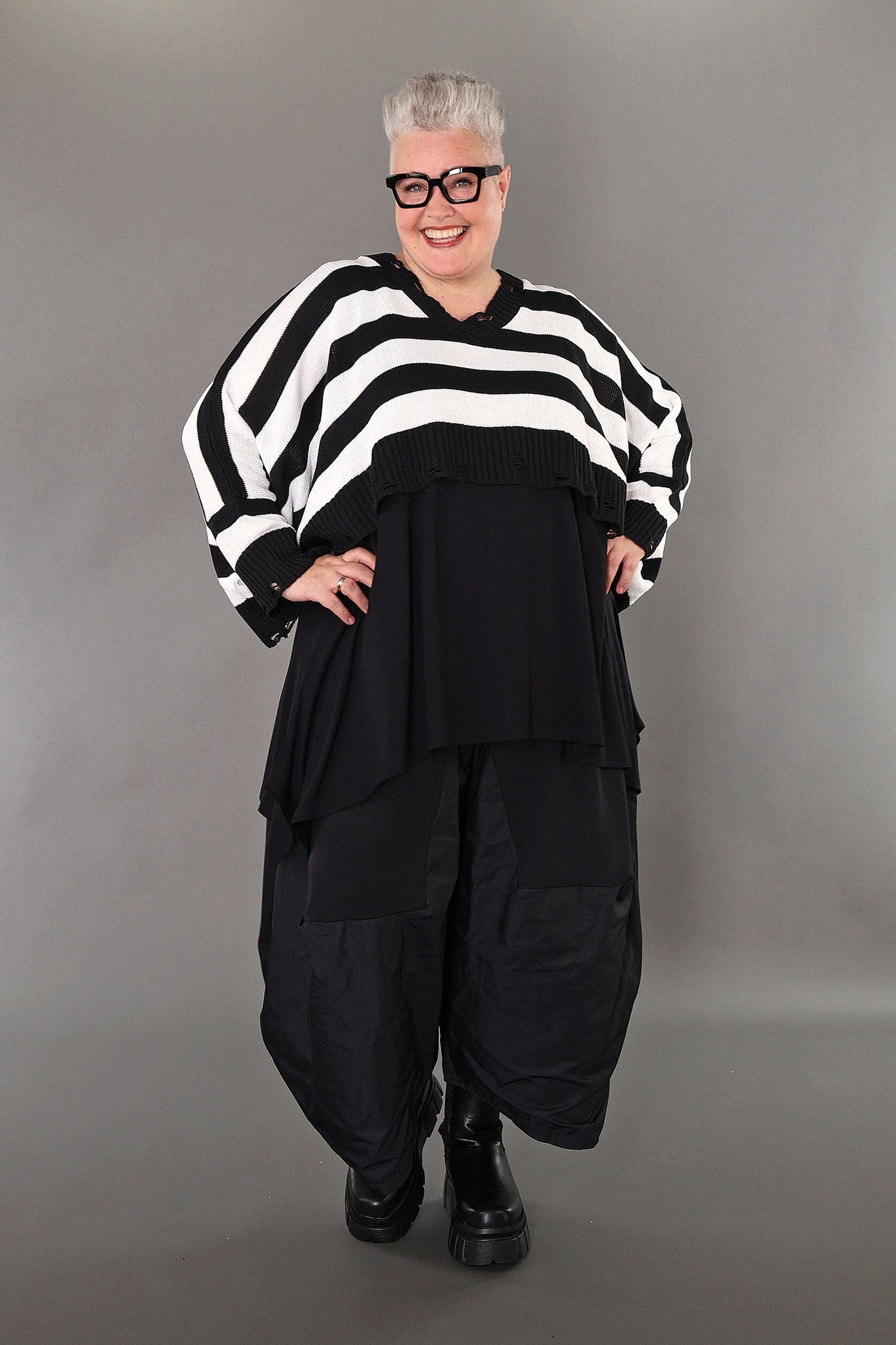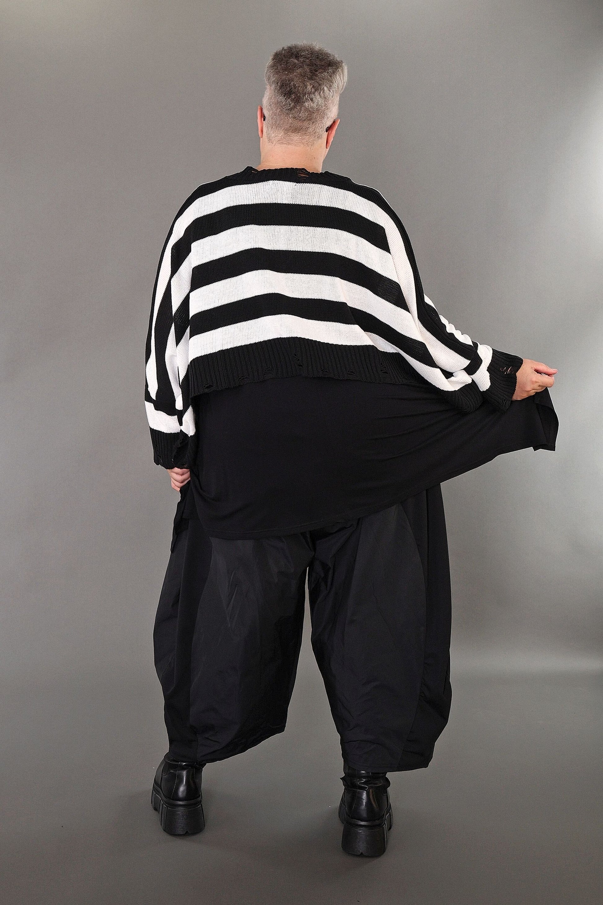 Worn by our model Regina (UK 20-24, 166cm) who can easily wear almost all AKH styles in an oversized style.