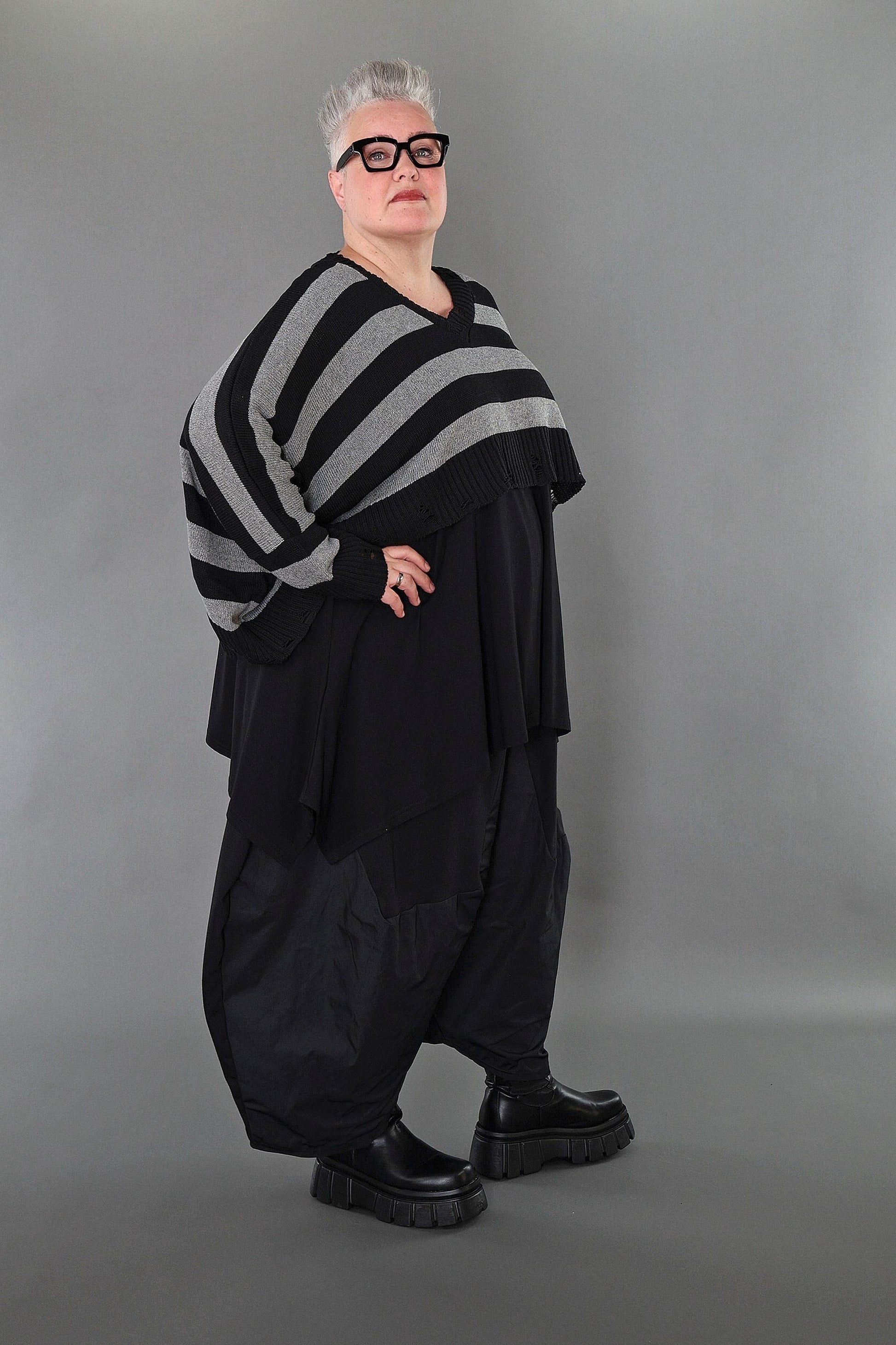 Size: One size fits all, wearable up to size 68. Total length: 45 cm. Half bust: 117 cm. Sleeve length: long sleeves.