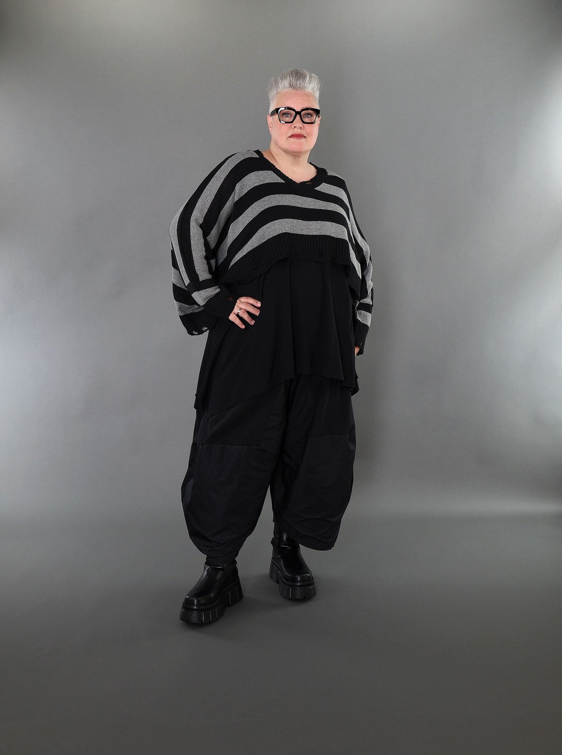 Worn by our model Regina (UK 20-24, 166cm) who can easily wear almost all AKH styles in an oversized style.