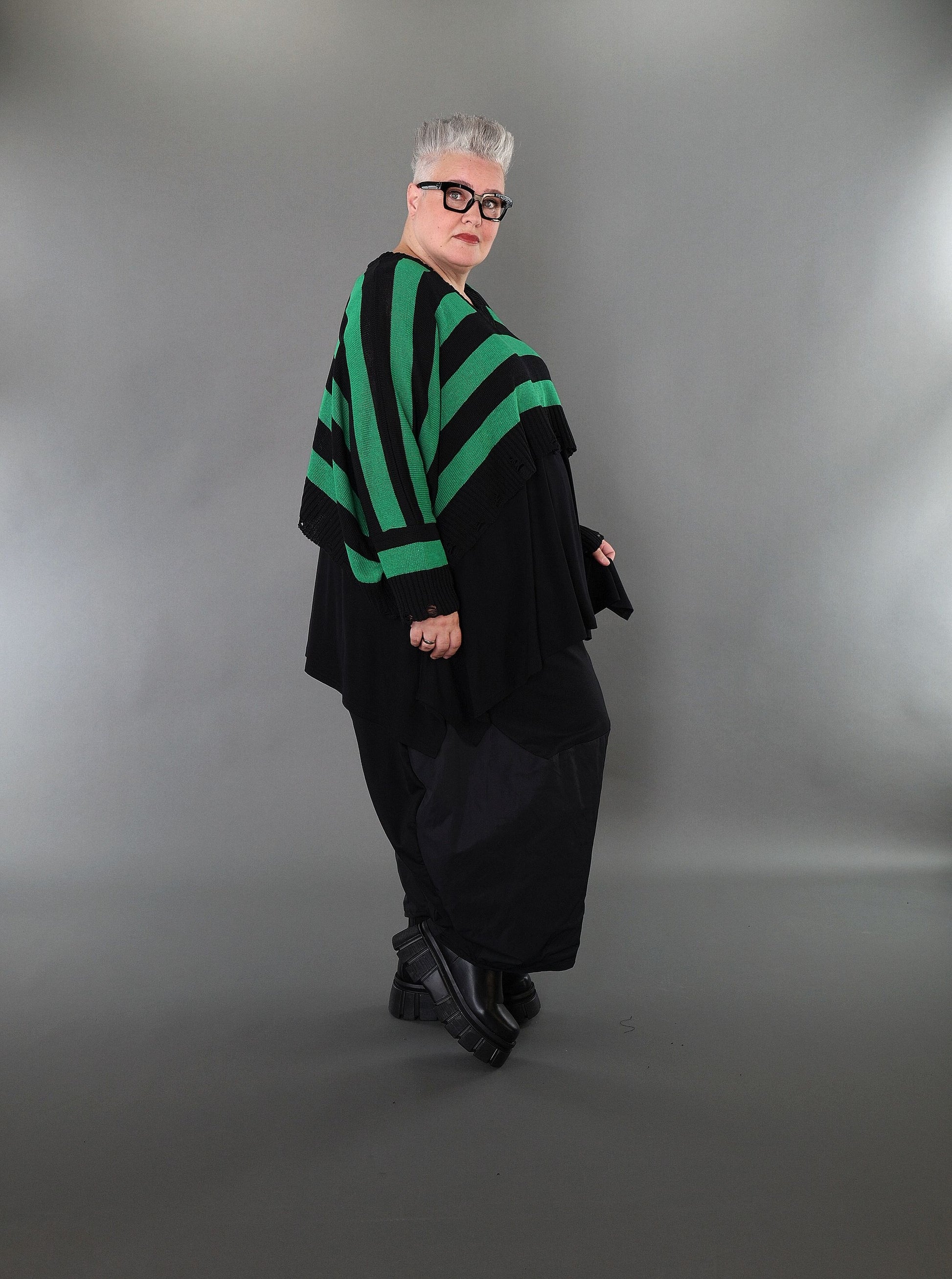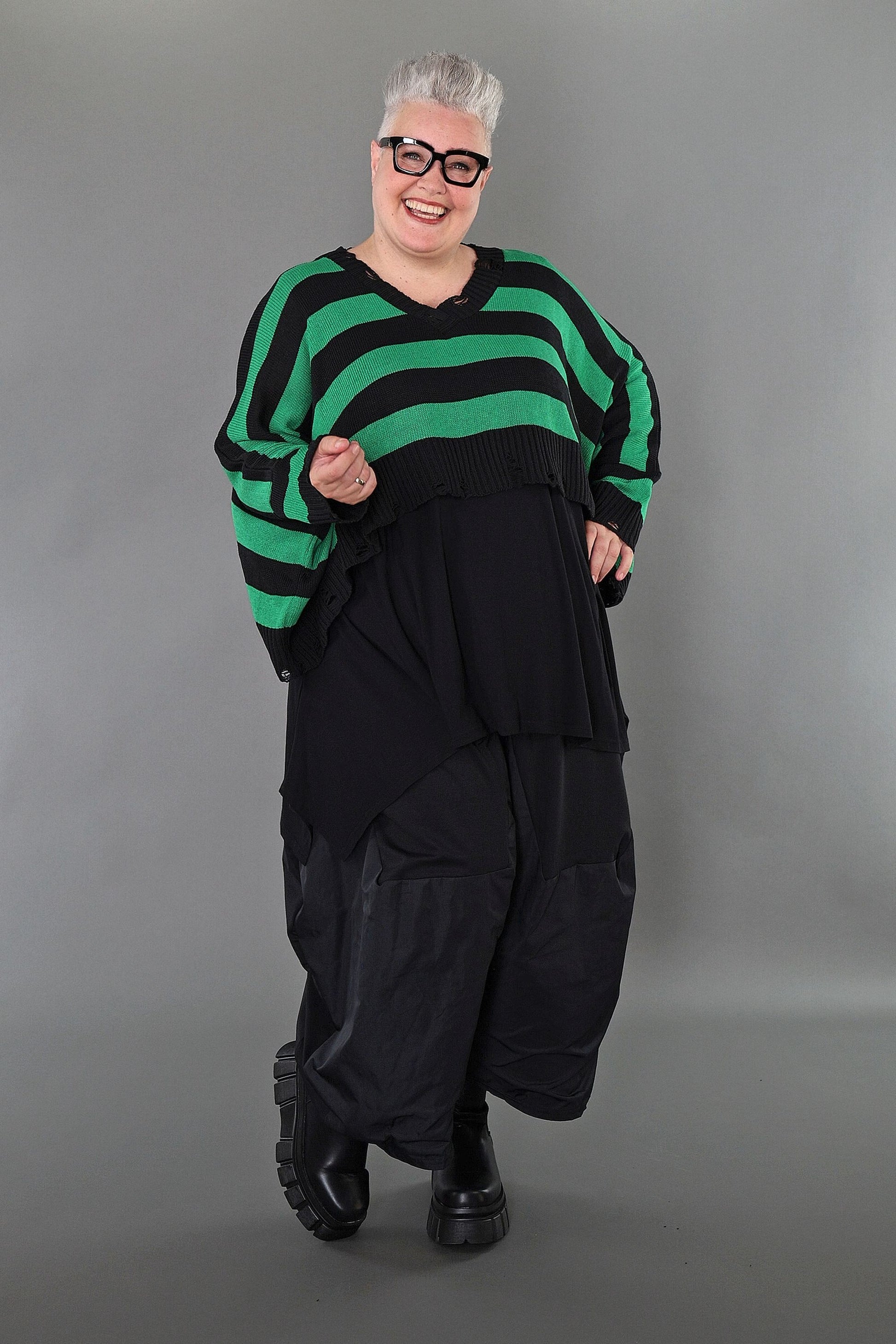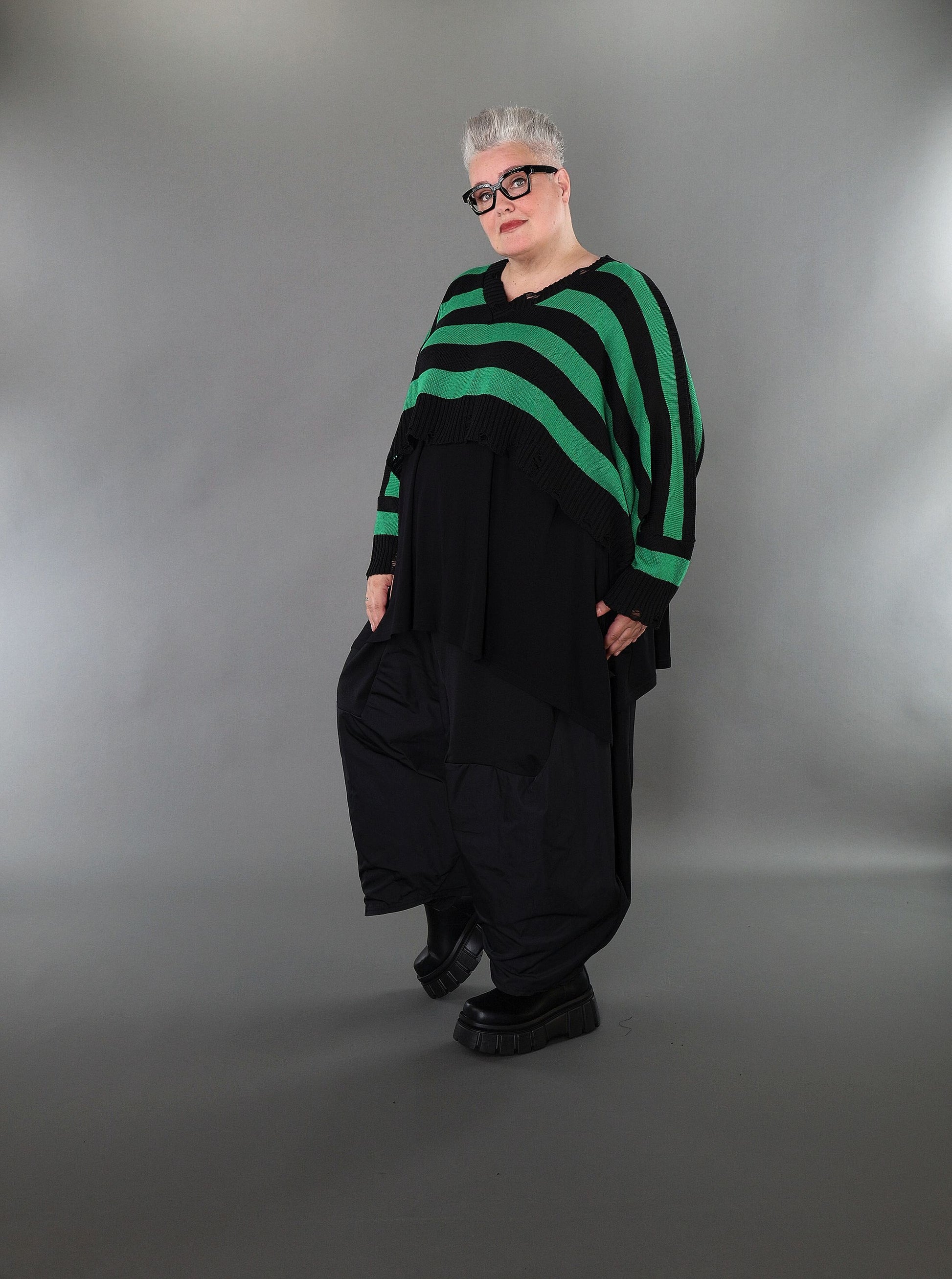 Worn by our model Regina (UK 20-24, 166cm) who can easily wear almost all AKH styles in an oversized style.