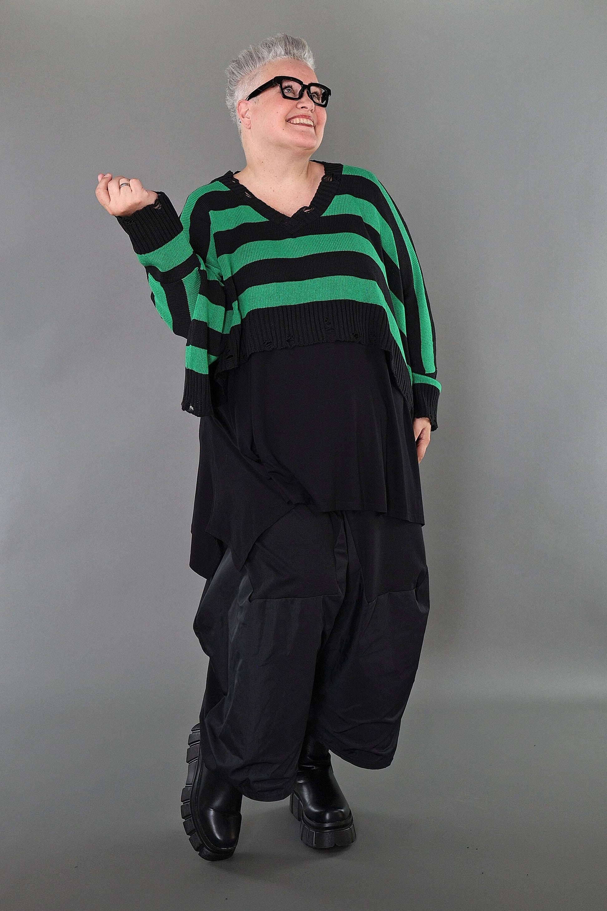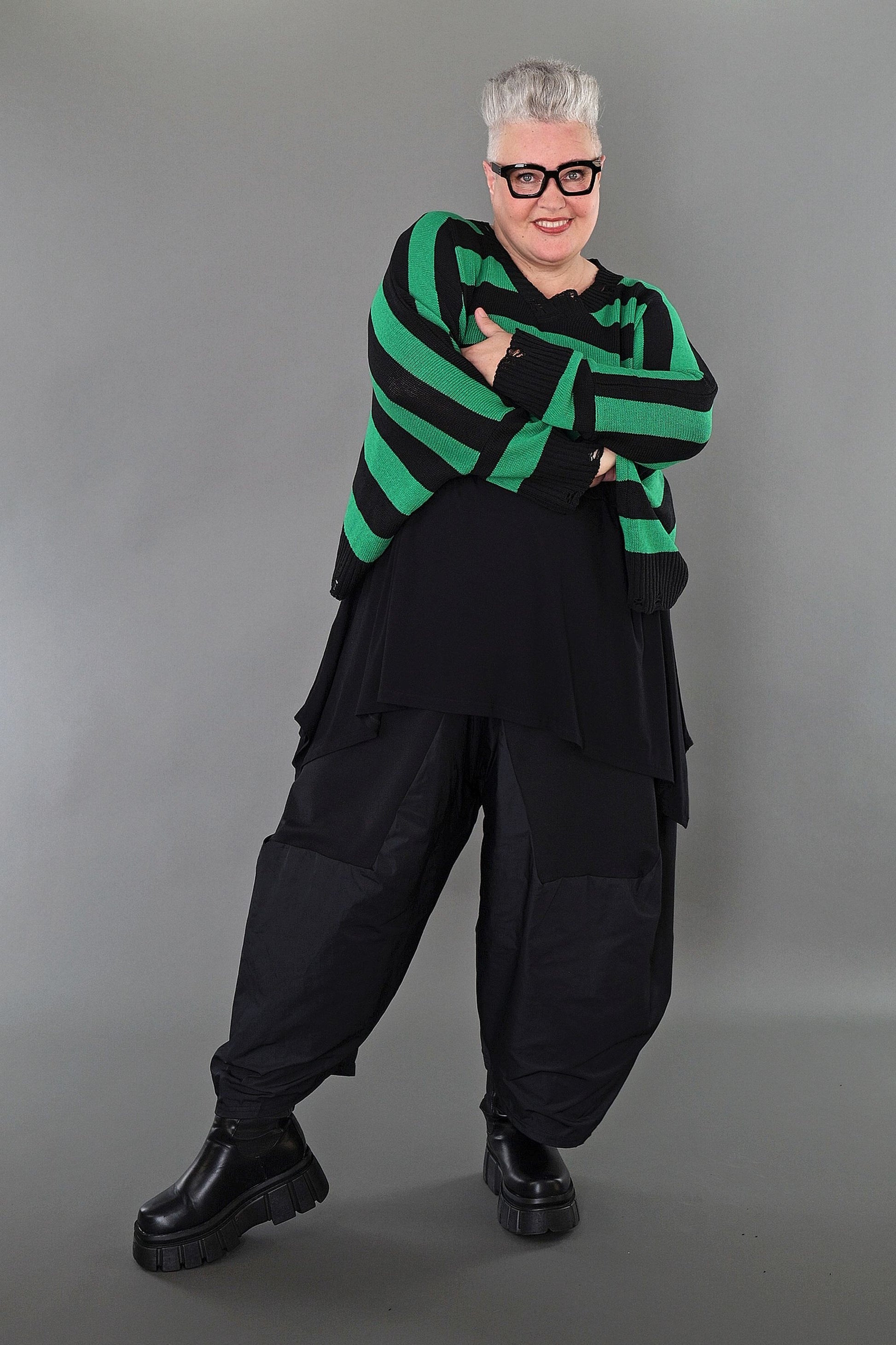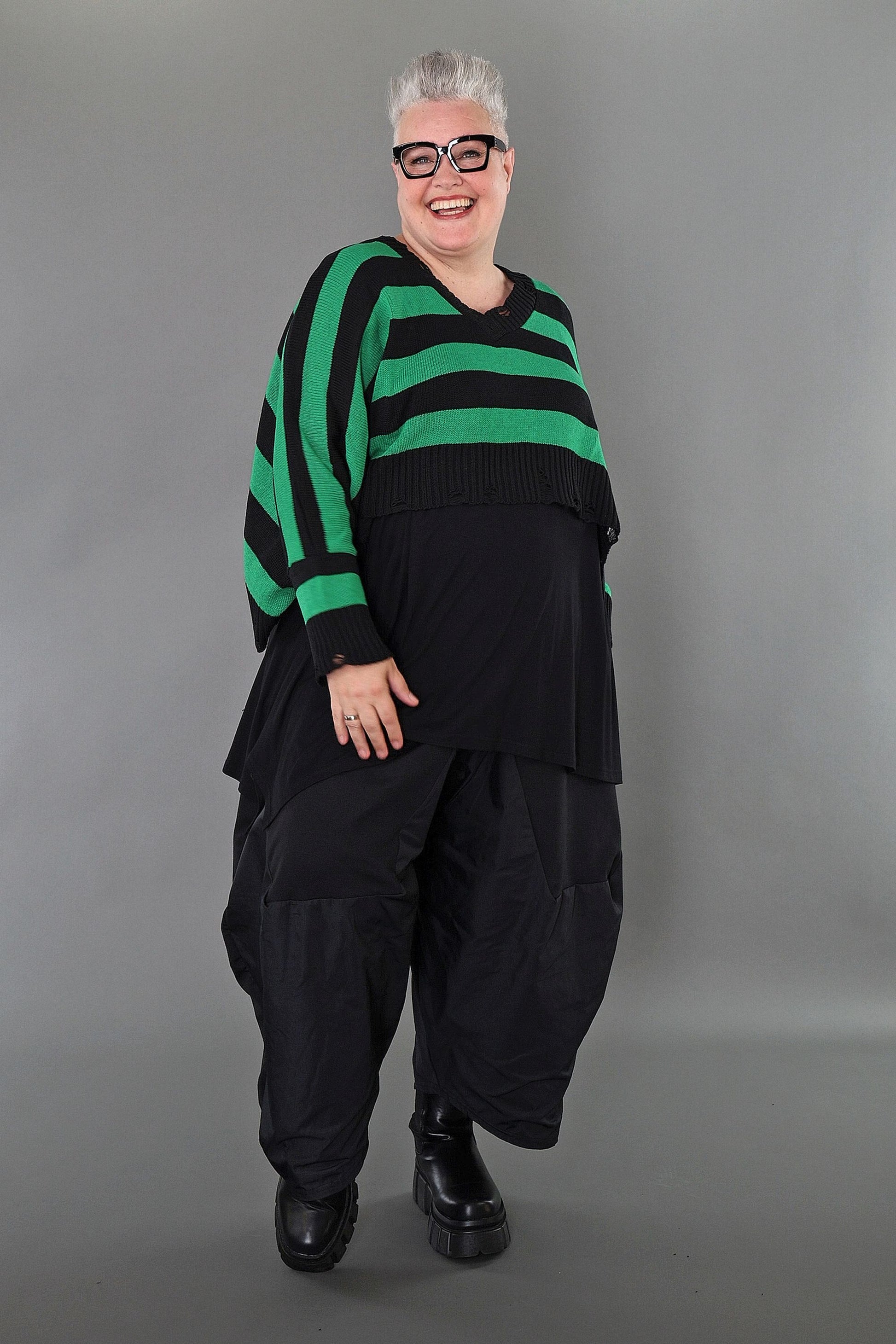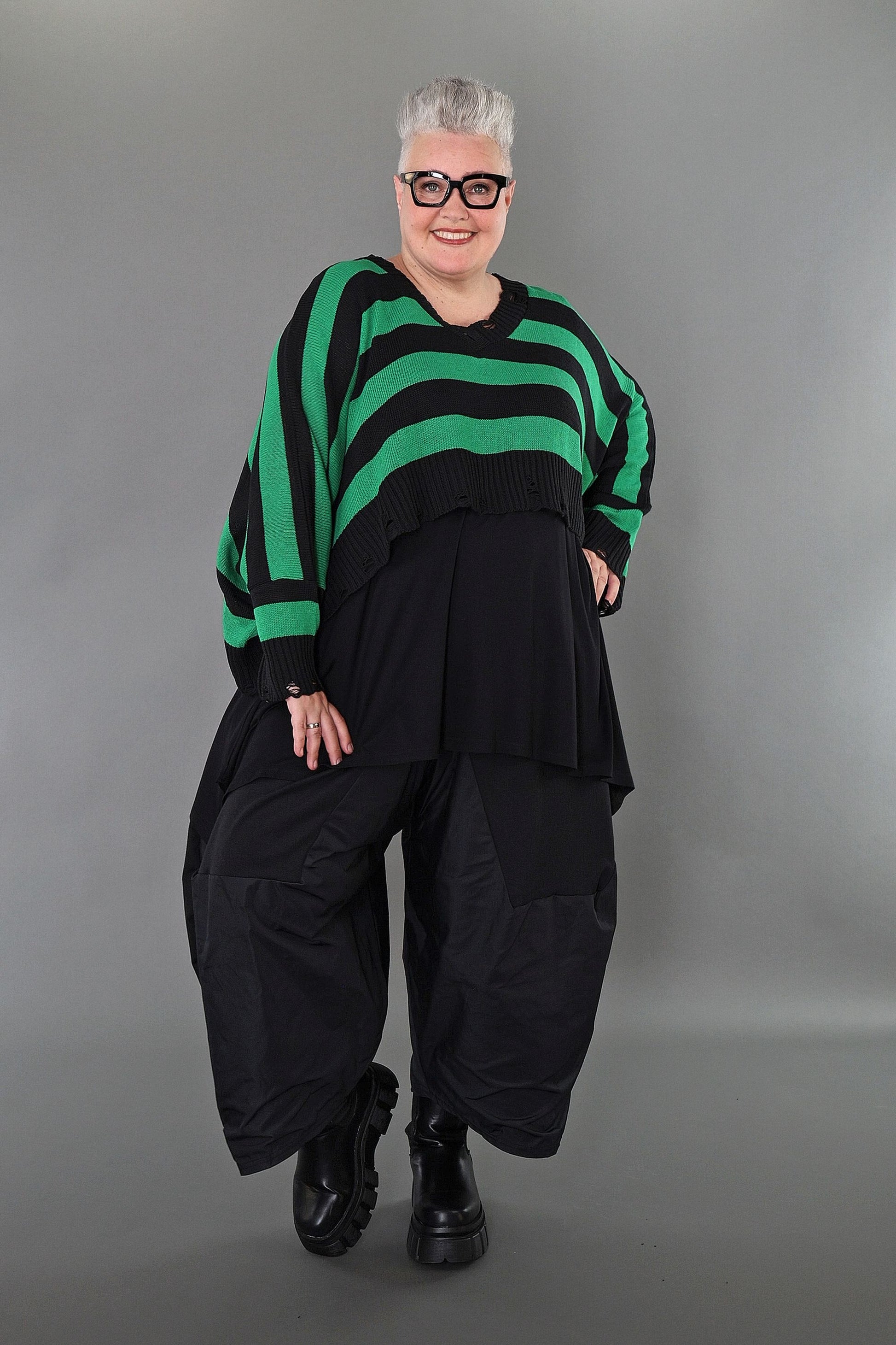 Worn by our model Regina (UK 20-24, 166cm) who can easily wear almost all AKH styles in an oversized style.