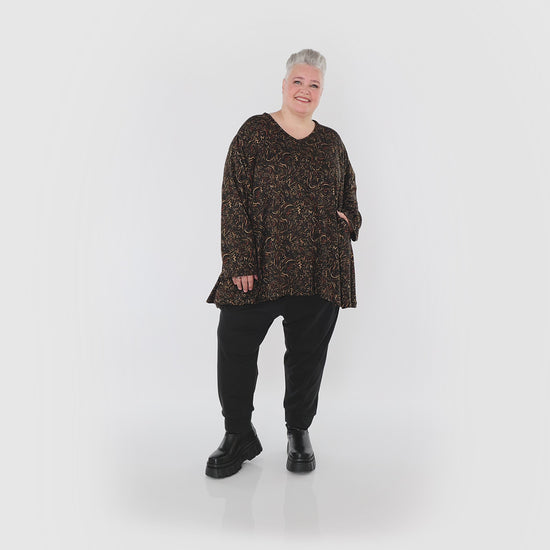 Fit & Feel – Fluid drape with gentle stretch for everyday comfort. Designed as one size to fit up to UK 24, this is often worn in an oversized or layered look. Made in Italy, machine washable at 30 °C for easy care.