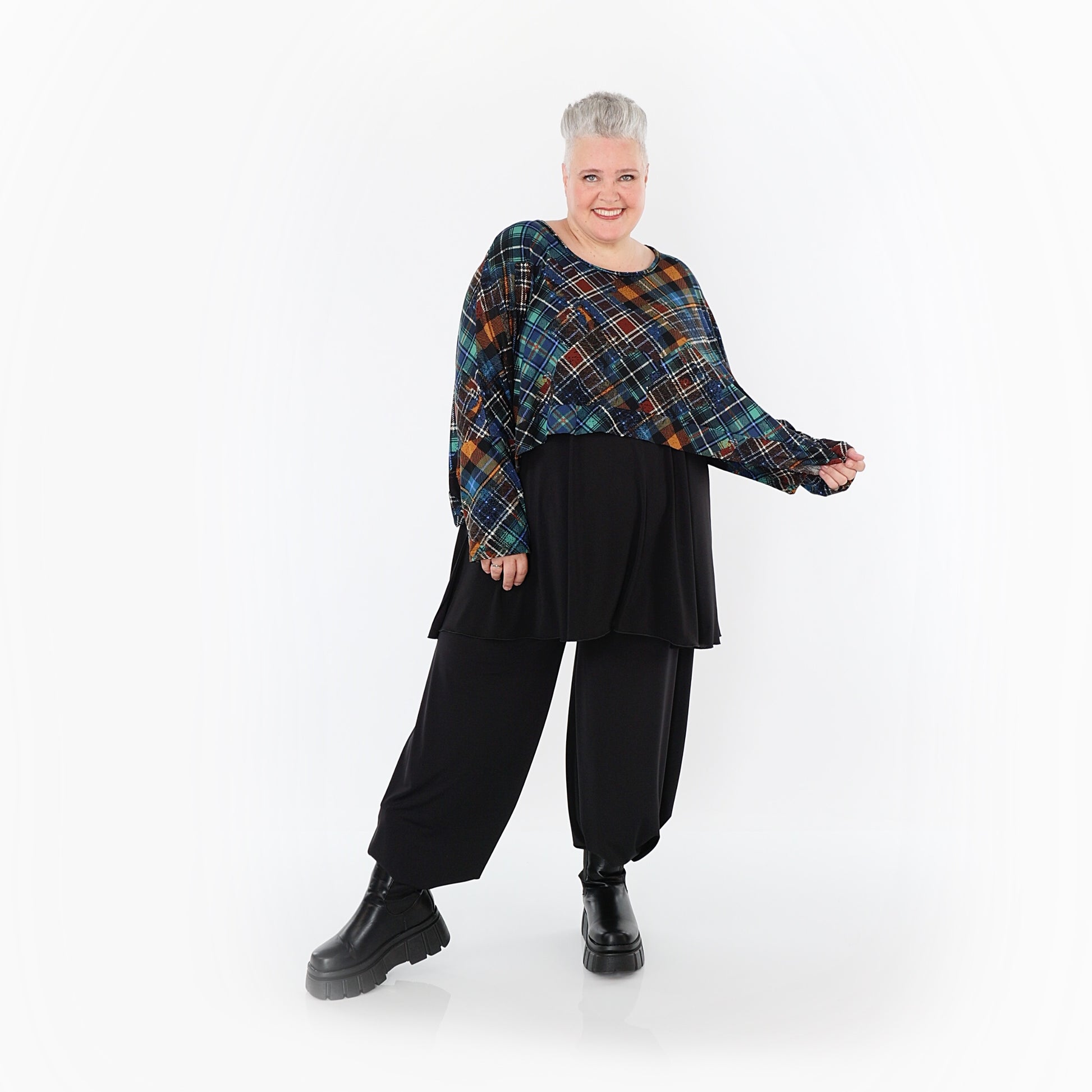 This playful “Caroline” Crop Top combines a modern boxy shape with a charming autumnal checked pattern. Its fine-knit fabric feels soft and light, perfect for transitional weather. With a cozy round neck and long sleeves, it’s your go-to for warmth and style—ideal for any casual outing or relaxed occasion.