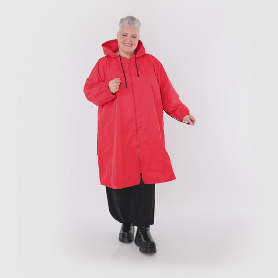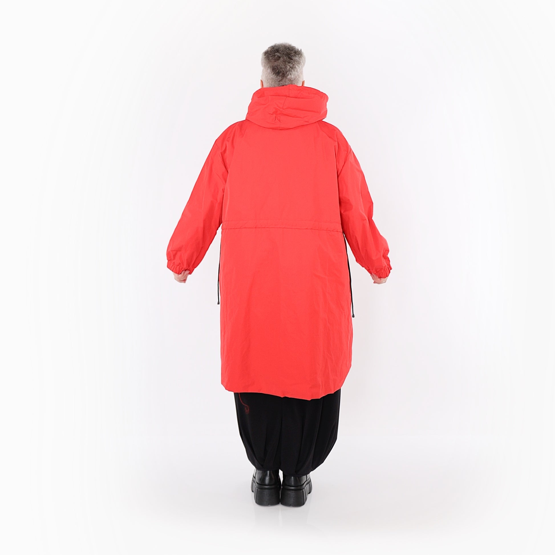 Stand out in the 7102 "LoveEcho" Jacket, where vibrant red meets soft, flowing memory taffeta. With a cosy hood and handy drawstring at the back, comfort follows wherever you go. Elastic cuffs keep the chill out while side pockets hold your essentials stylishly. Perfectly lined for all-year wear, this playful coat turns every day into a fashion adventure.