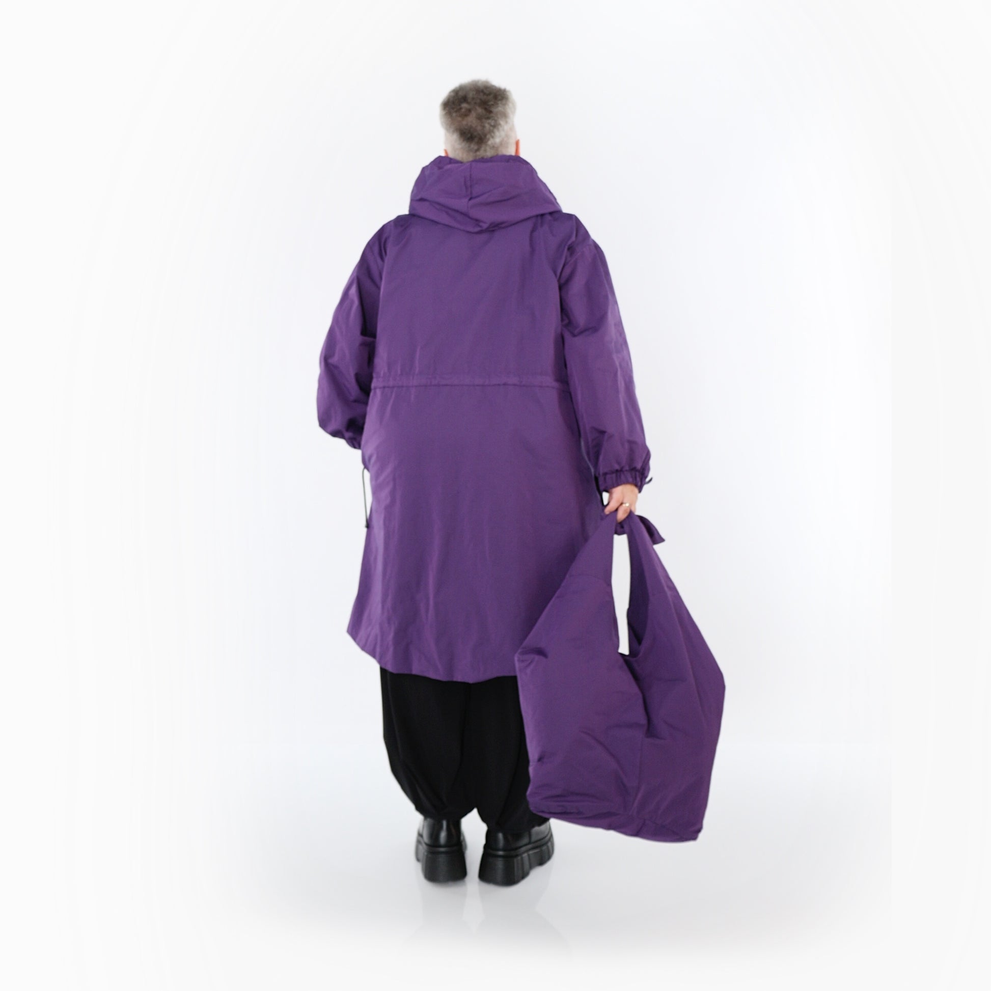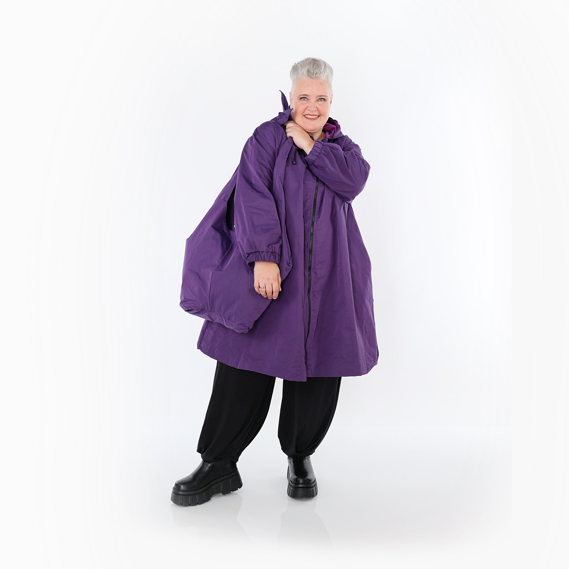 Stand out in the 7102 "LoveEcho" Jacket, where gorgeous deep violet meets soft, flowing memory taffeta. With a cosy hood and handy drawstring at the back, comfort follows wherever you go. Elastic cuffs keep the chill out while side pockets hold your essentials stylishly. Perfectly lined for all-year wear, this playful coat turns every day into a fashion adventure.