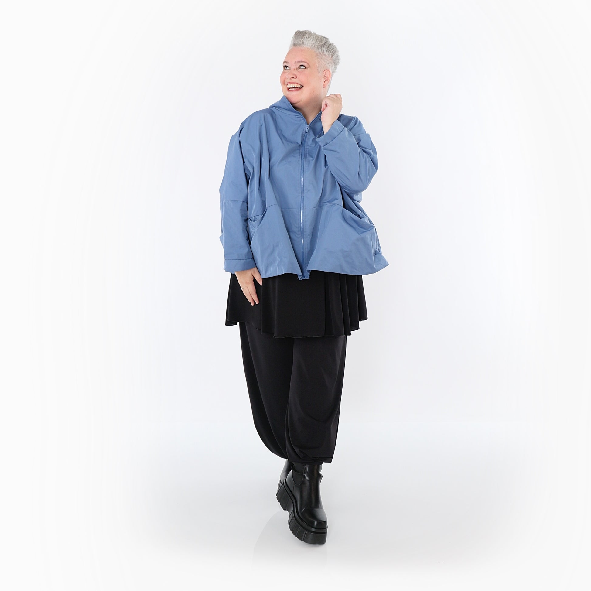 Meet the 7104 "LoveEcho" Jacket in a dazzling azure blue – your playful partner for every season! Crafted from silky memory taffeta, this boxy-cut short jacket feels soft and stylish, perfect for those cooler days or breezy transitions. With its chic stand-up collar and handy in-seam pockets, it brings both flair and function to your wardrobe. Lightly lined for ease, it moves with you, keeping comfort front and centre all year long. Ready to echo your love for effortless style?