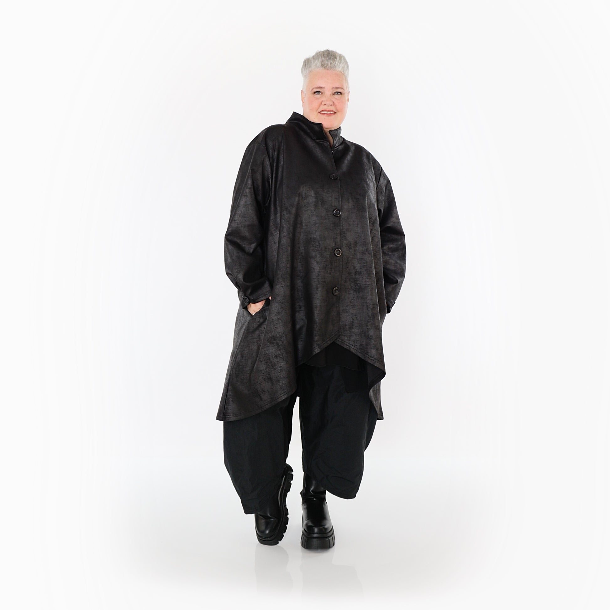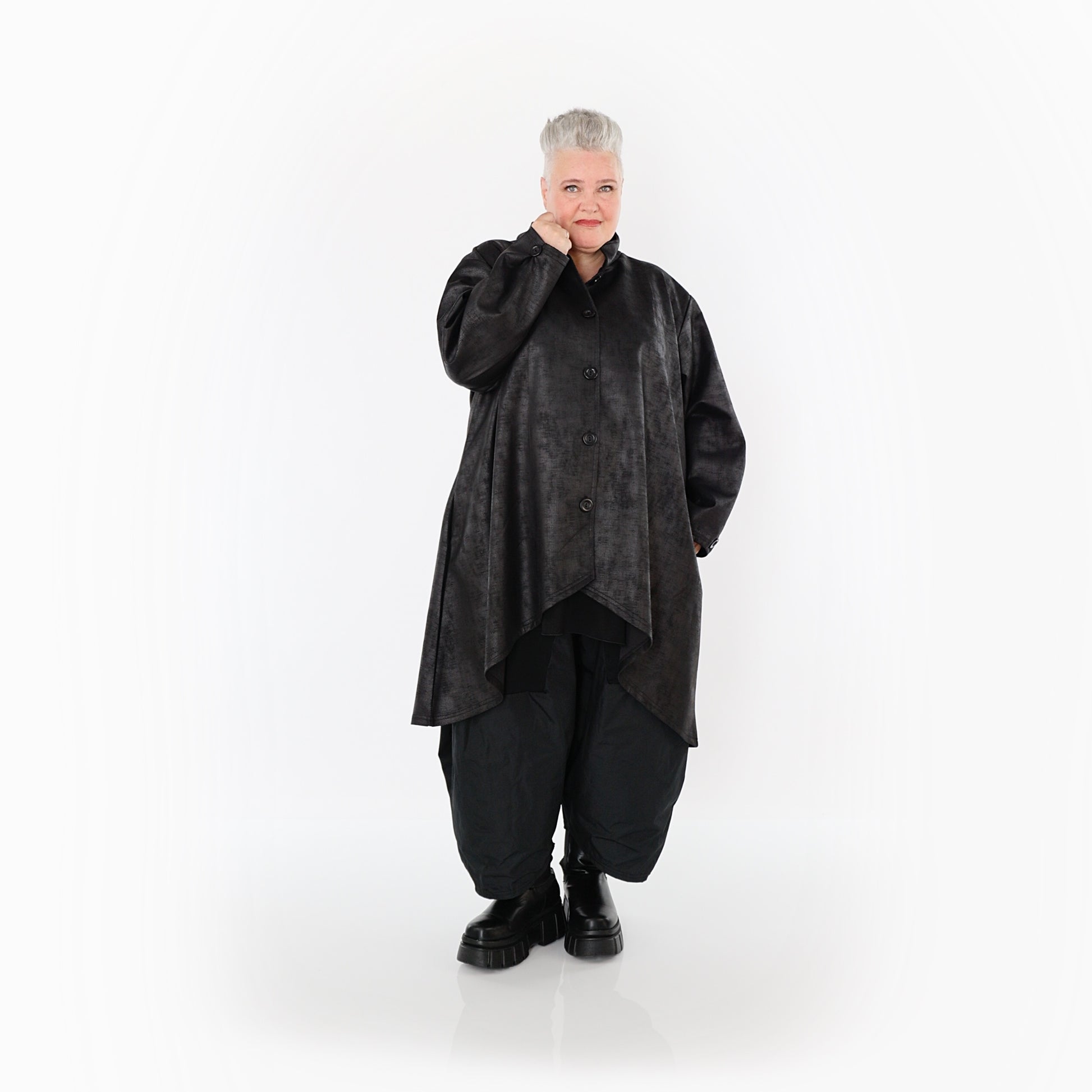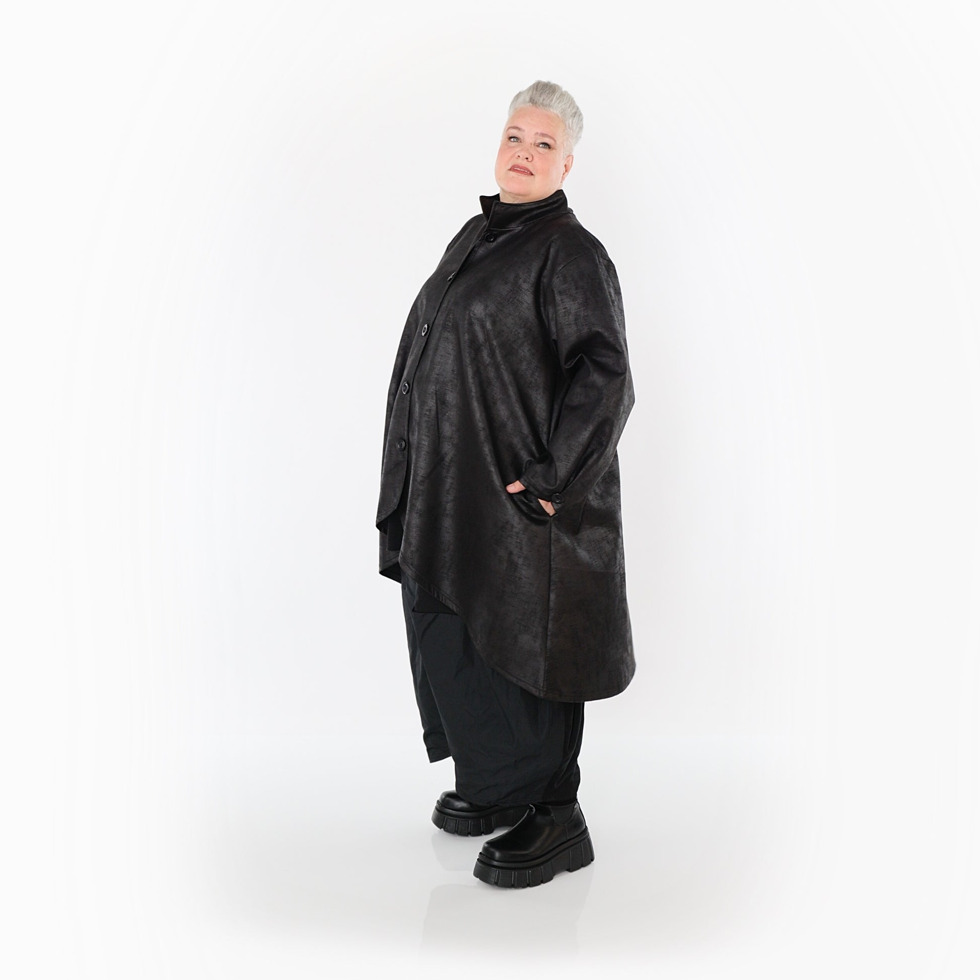 Jacket description AKH all-season jacket in a mullet shape made from soft imitation leather. One size fits all, wearable up to EU size 54, is also popular with customers with smaller sizes for oversized or loose, casual wear.
