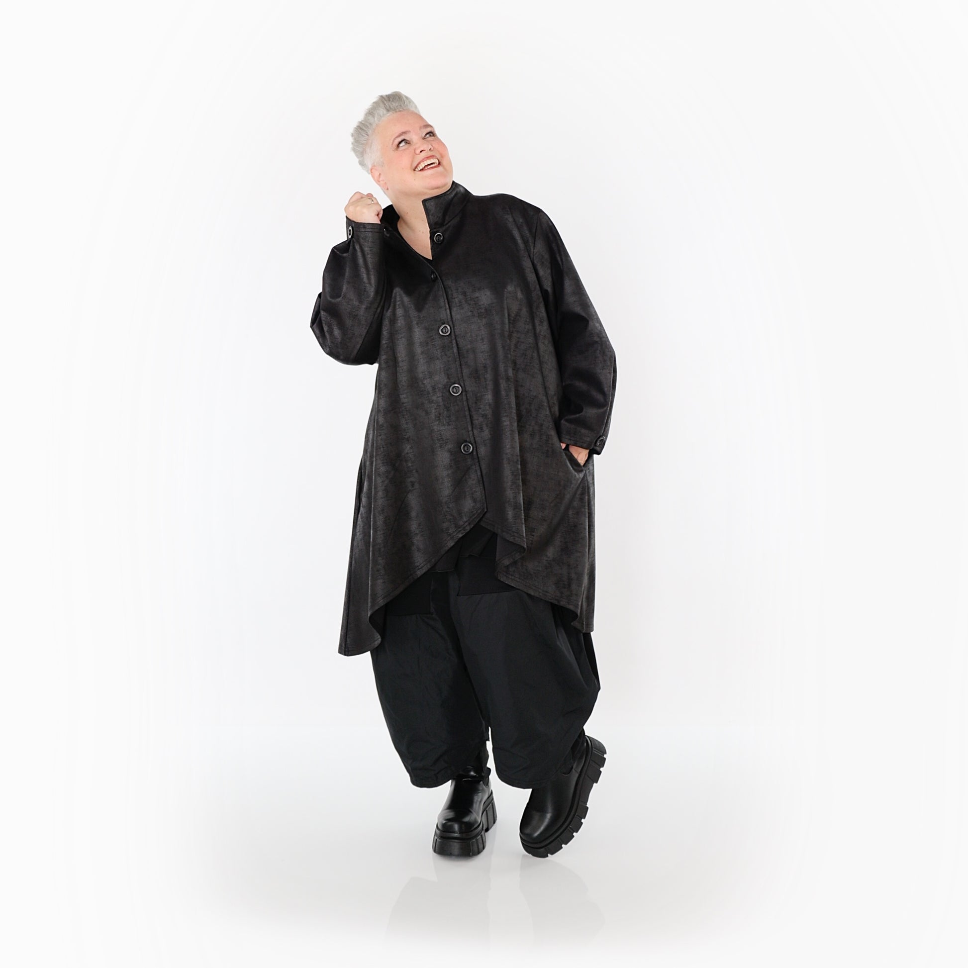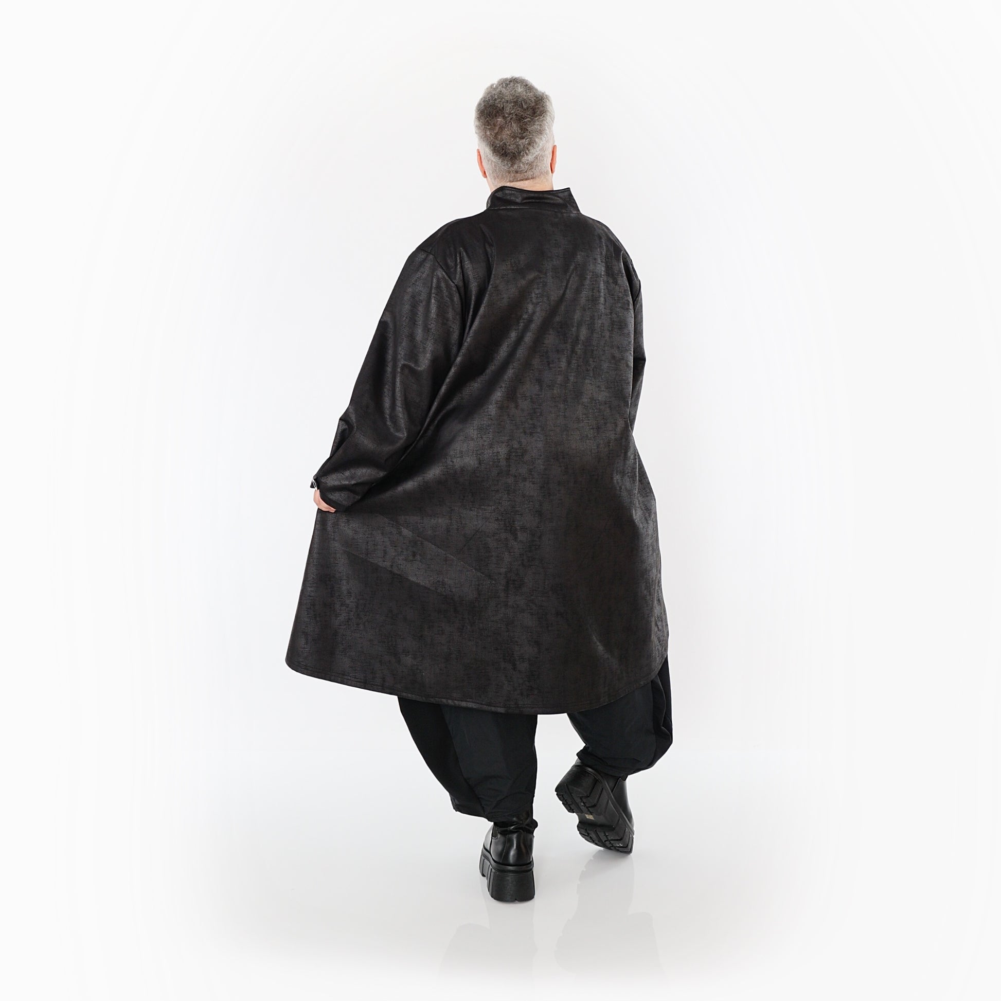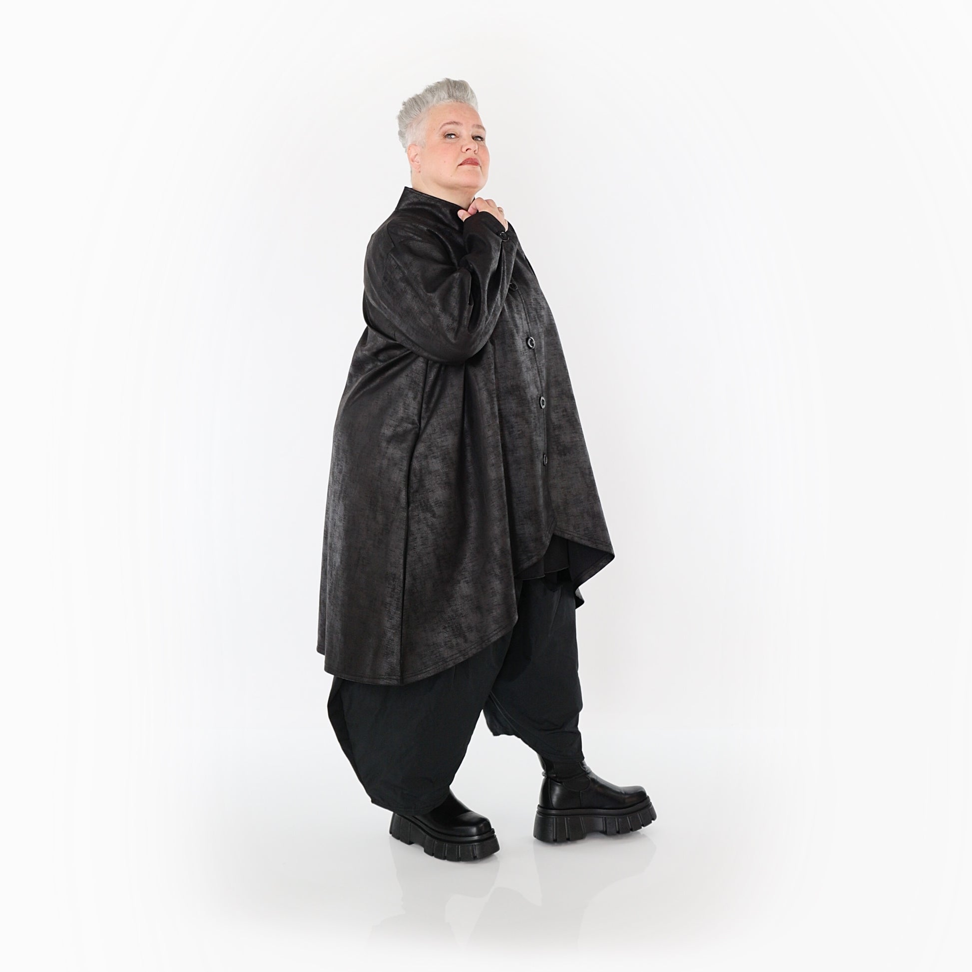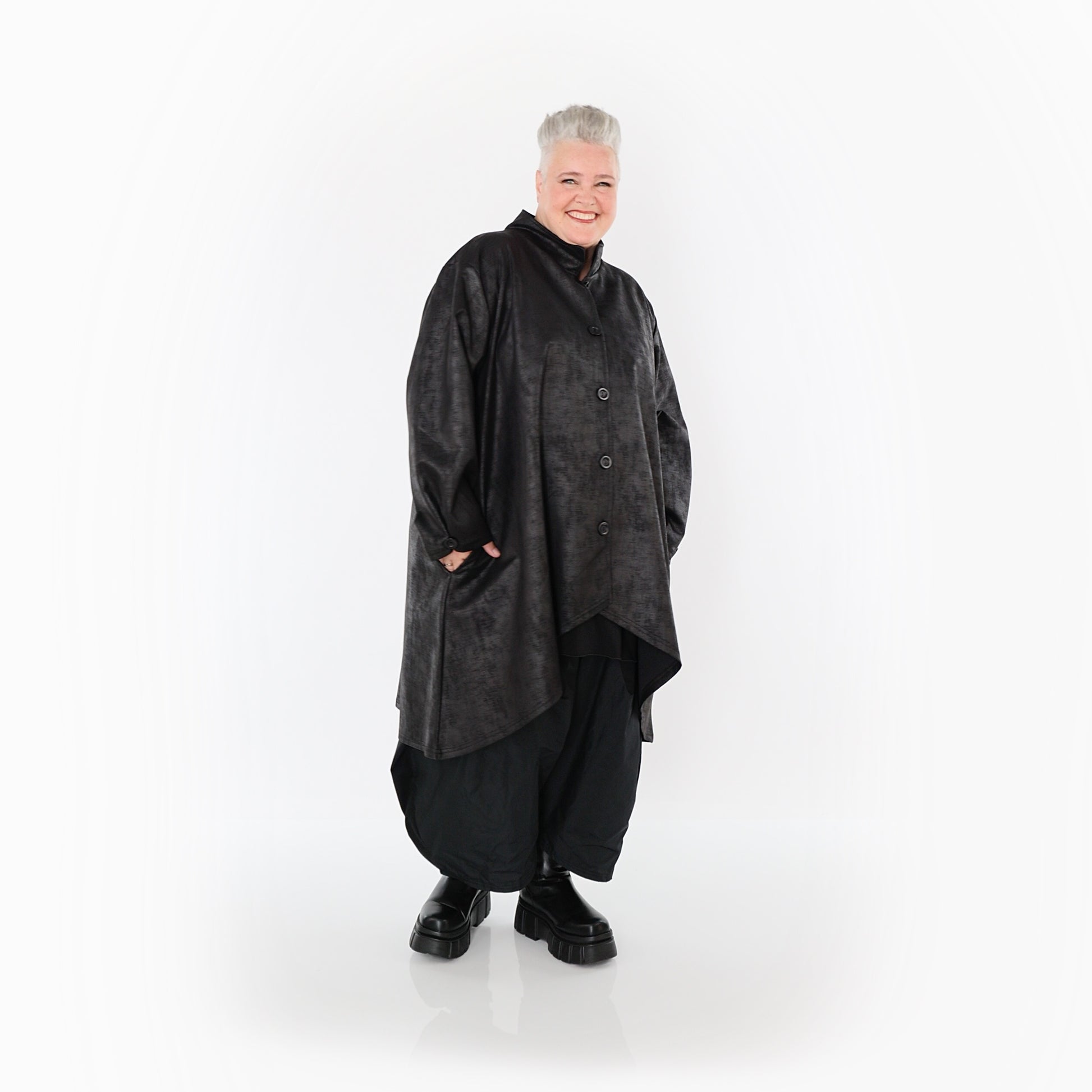 Jacket description AKH all-season jacket in a mullet shape made from soft imitation leather. One size fits all, wearable up to EU size 54, is also popular with customers with smaller sizes for oversized or loose, casual wear.