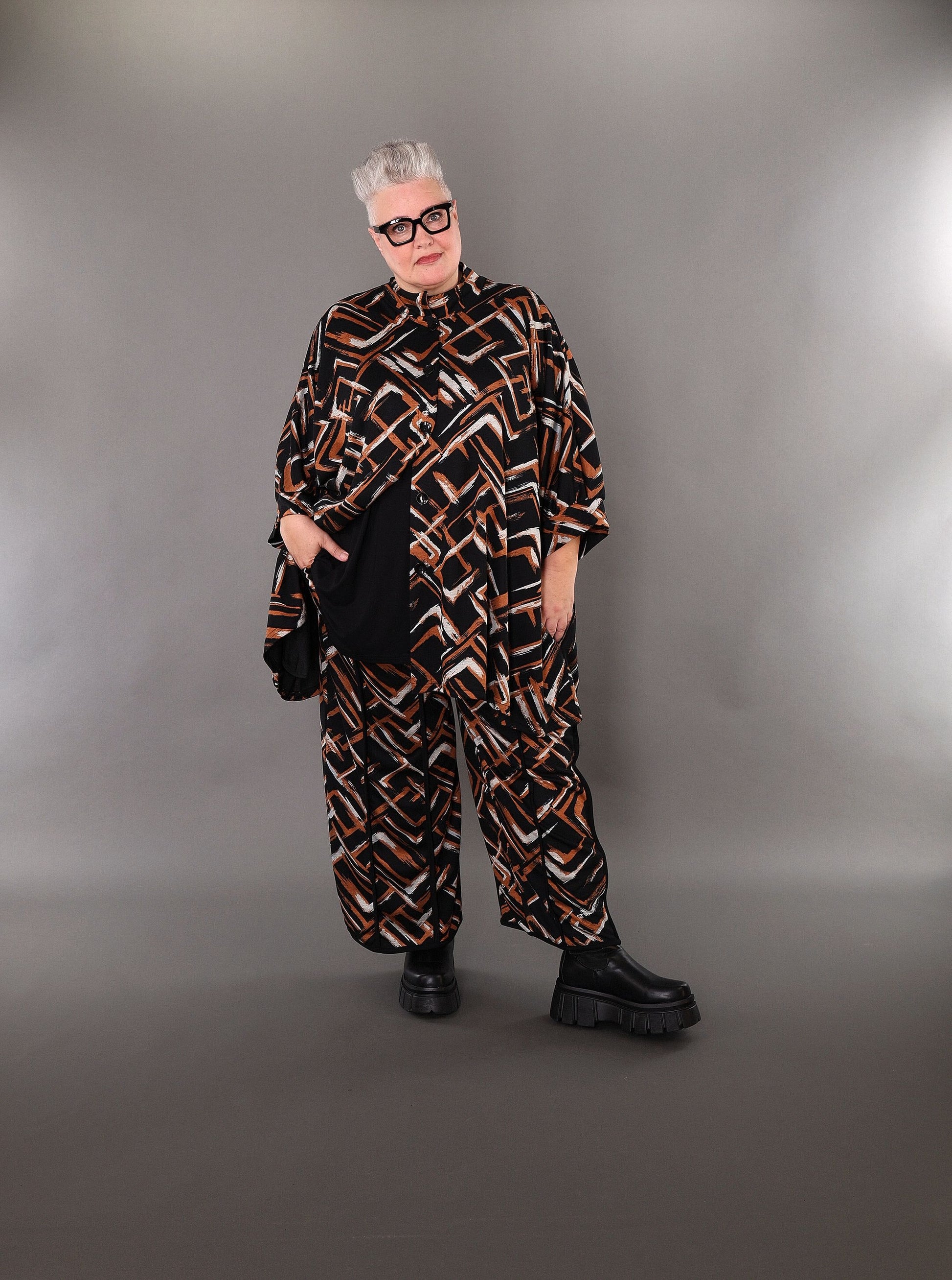 Worn by our model Regina (UK 20-24, 166cm) who can easily wear almost all AKH styles in an oversized style.