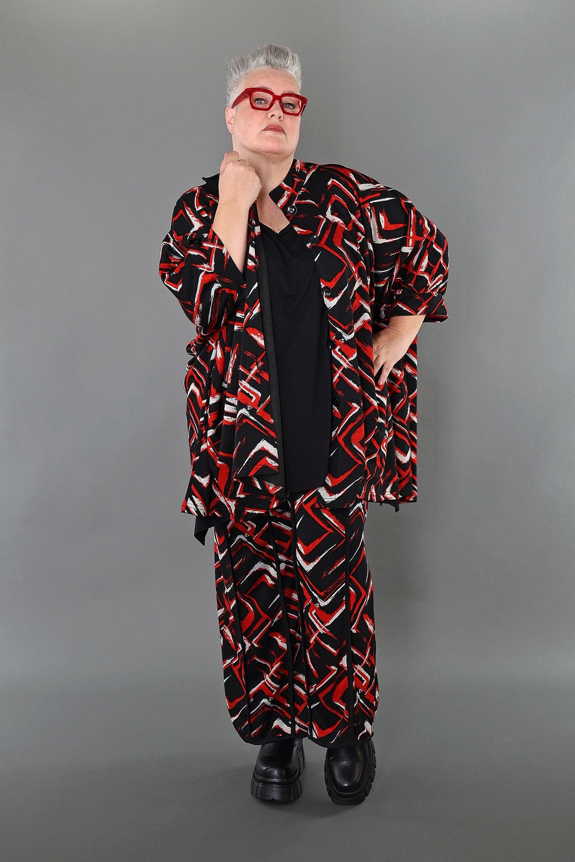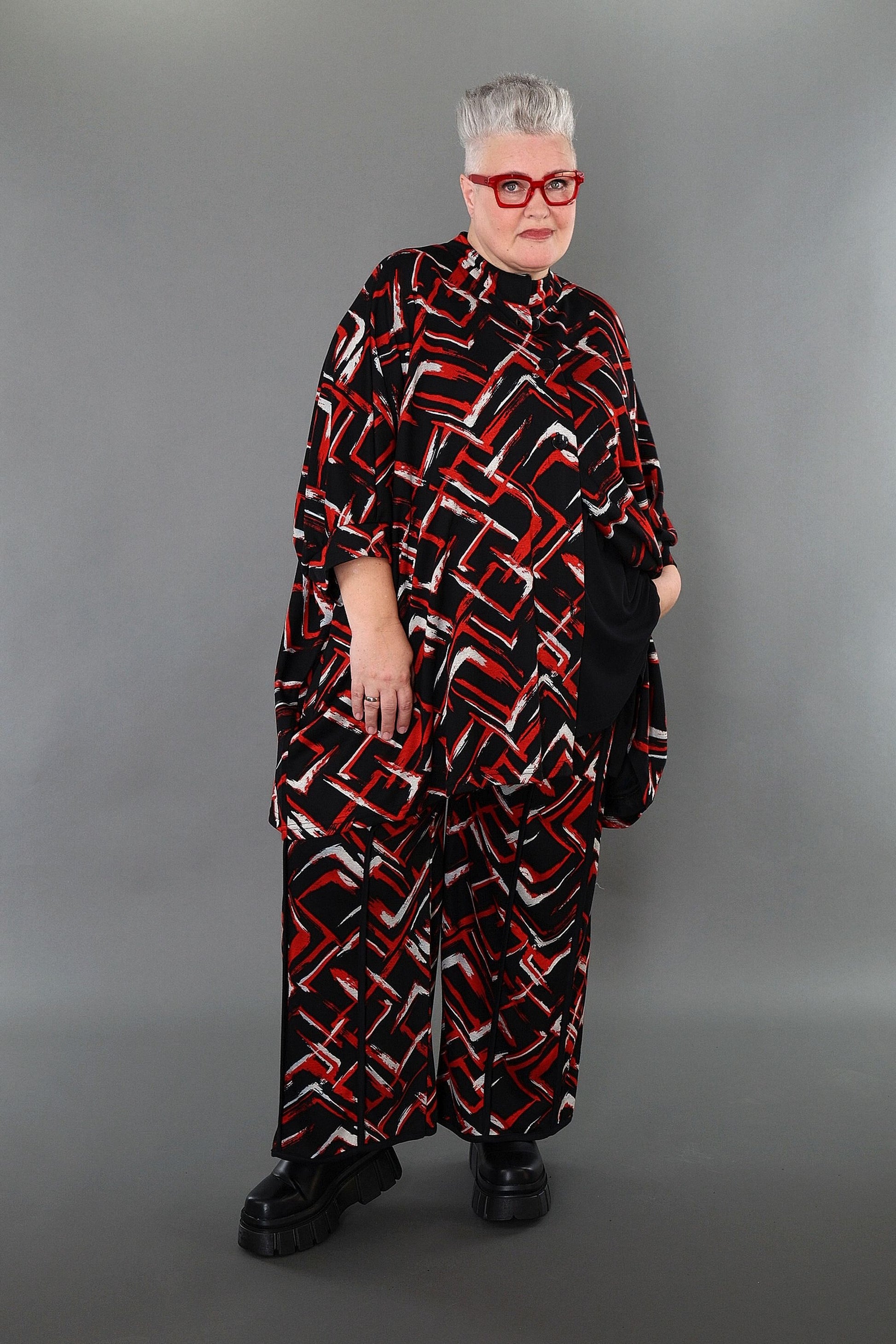 Worn by our model Regina (UK 20-24, 166cm) who can easily wear almost all AKH styles in an oversized style.