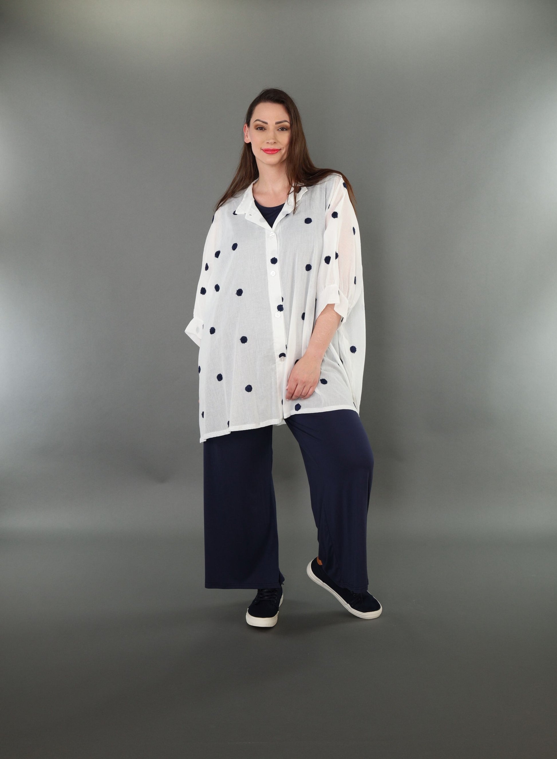 Fit & Feel – Fluid drape with gentle stretch for everyday comfort. Designed as one size to fit up to UK 24, this is often worn in an oversized or layered look. Made in Italy, machine washable at 30 °C for easy care.