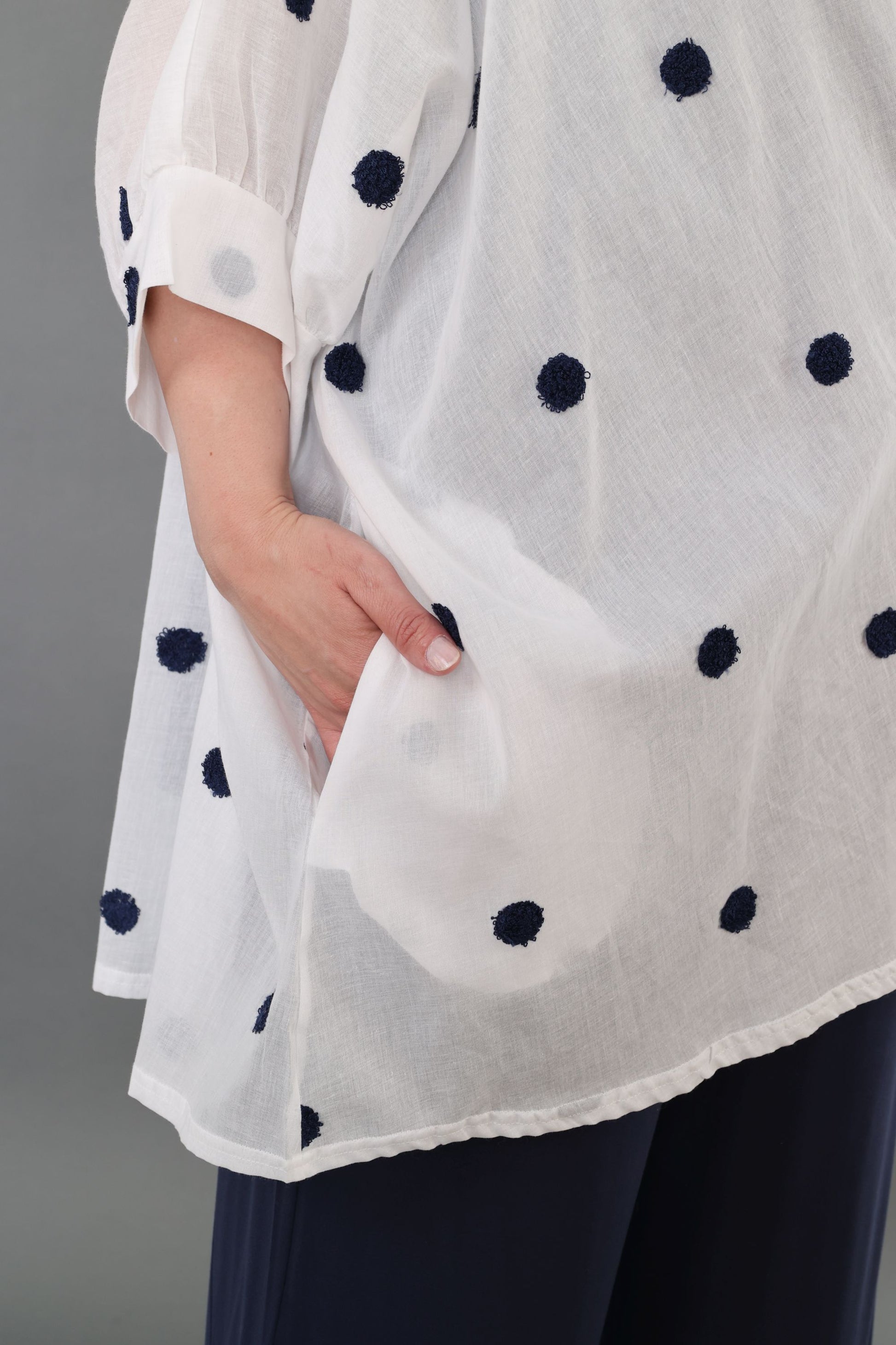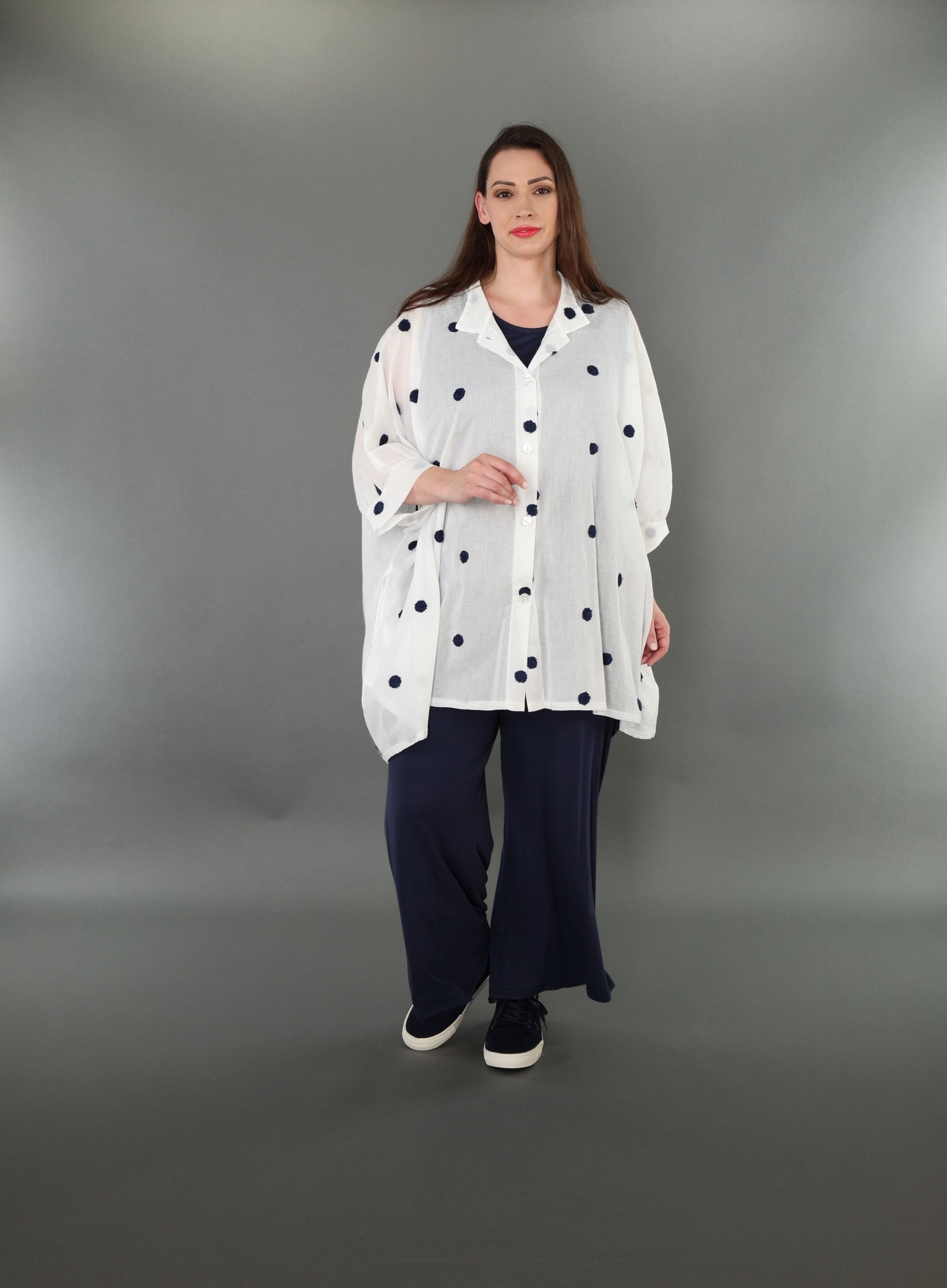 Size: One size fits all, wearable up to size 68. Total length: 90 cm. Half bust: 106 cm. Sleeve length: half sleeve.