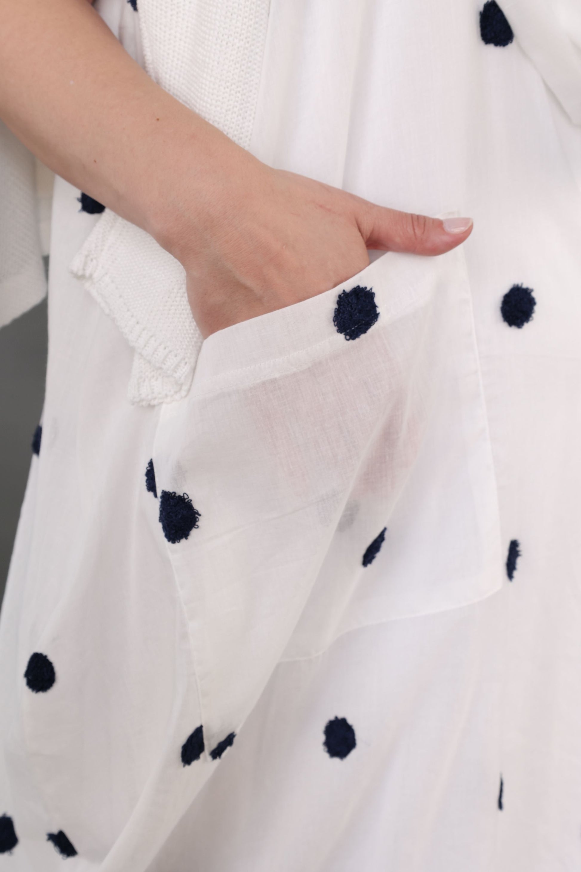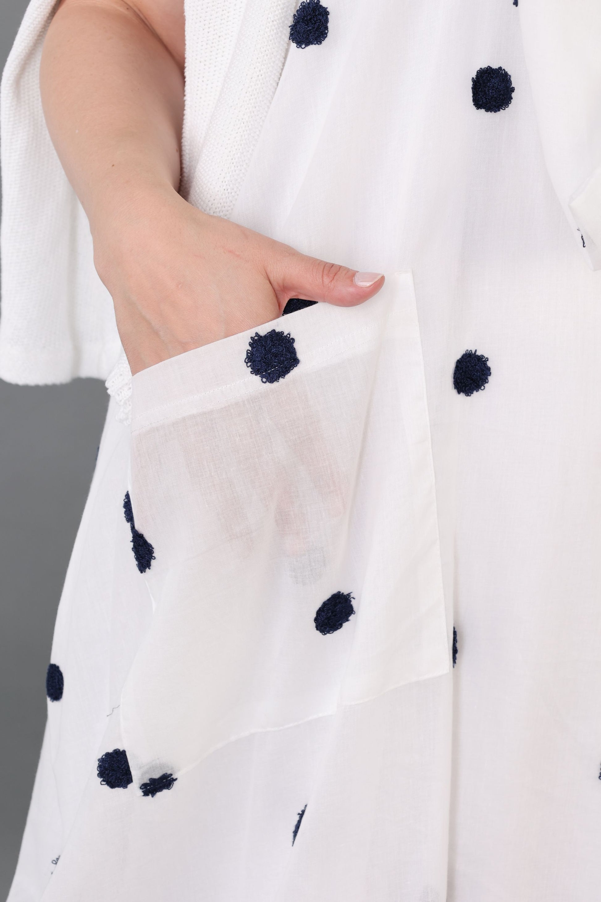 Fit & Feel – Fluid drape with gentle stretch for everyday comfort. Designed as one size to fit up to UK 24, this is often worn in an oversized or layered look. Made in Italy, machine washable at 30 °C for easy care.