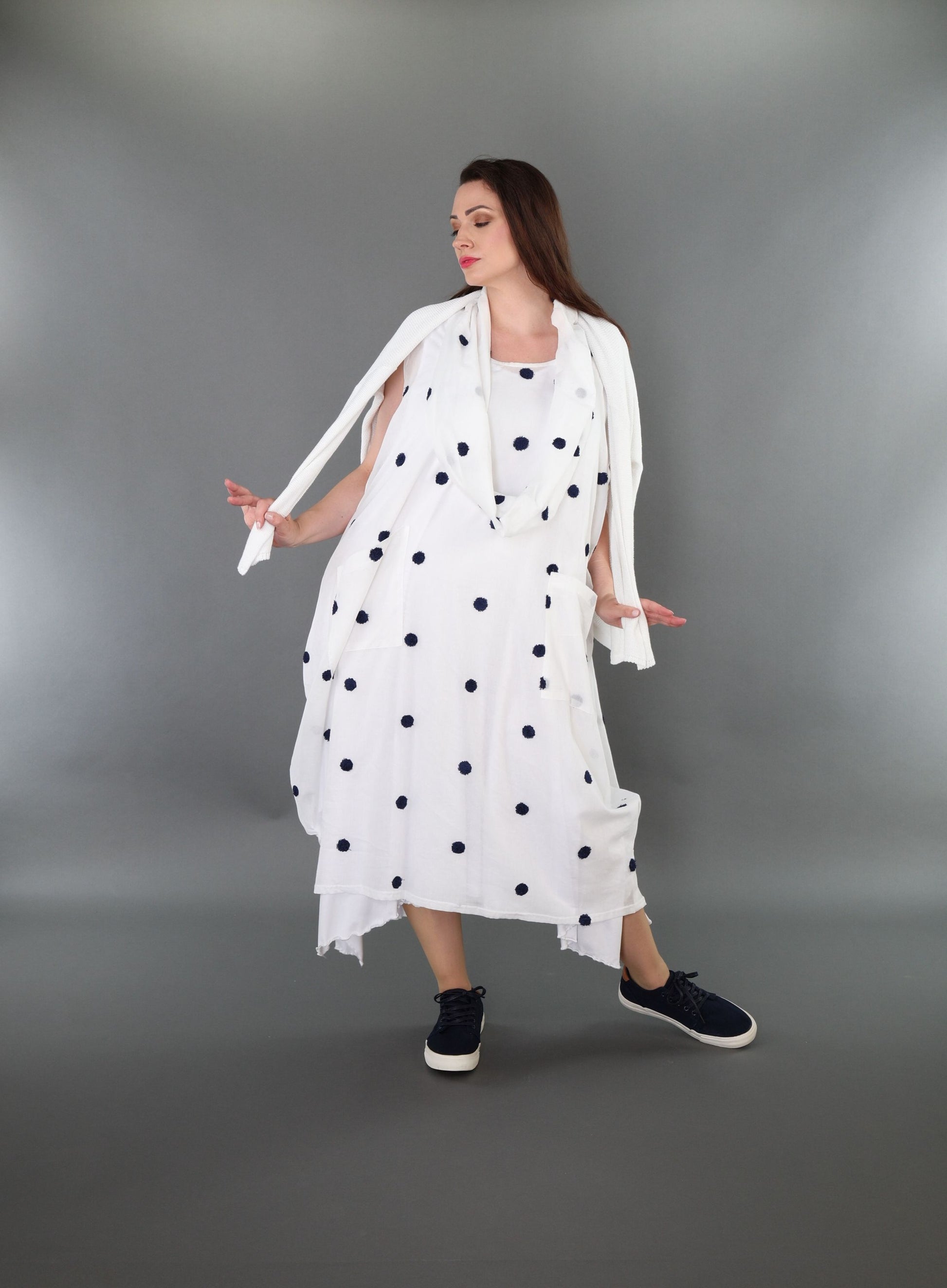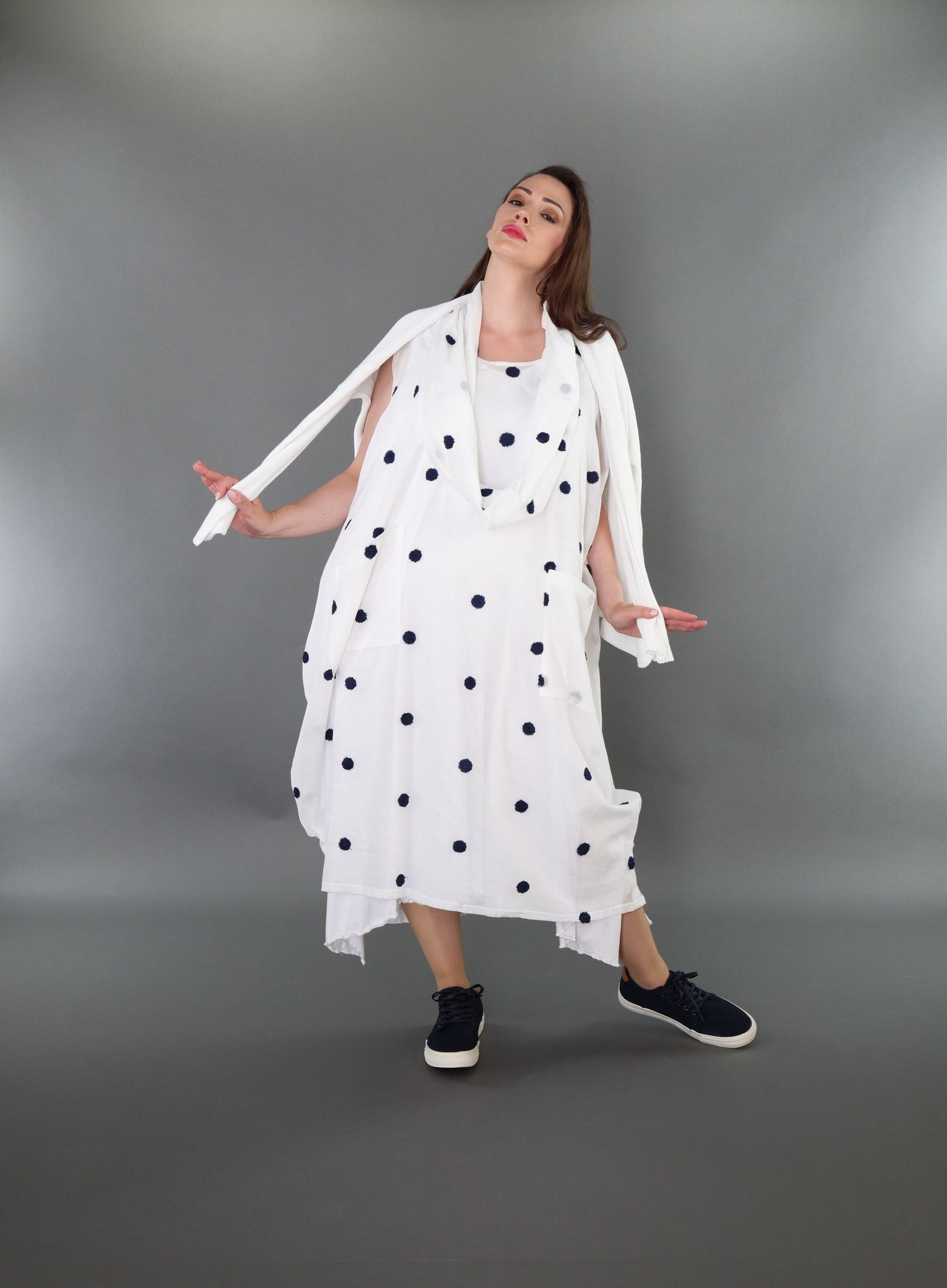 Worn by our model Regina (UK 20-24, 166cm) who can easily wear almost all AKH styles in an oversized style.