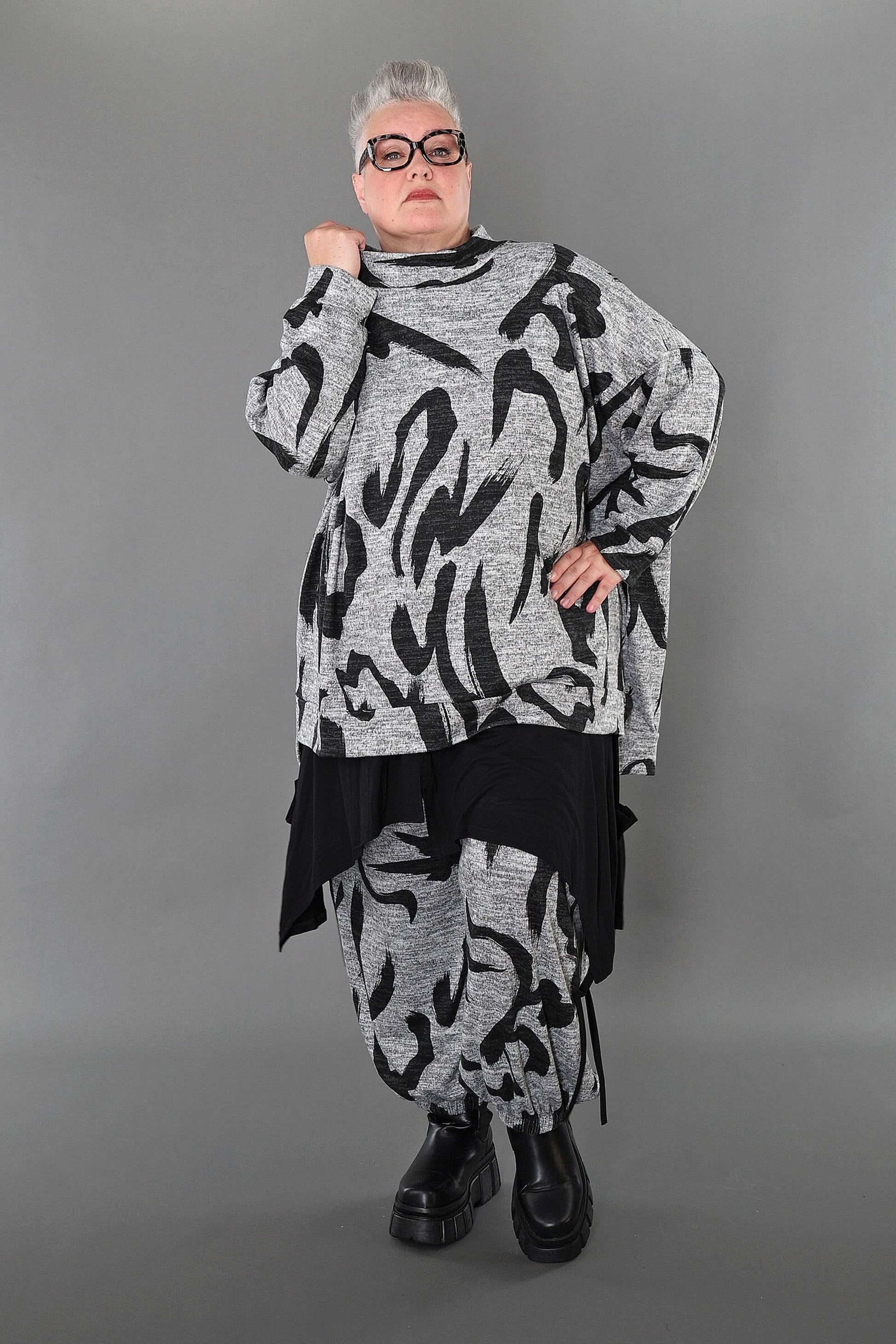 This trendy piece, made from an innovative blend of materials, offers a comfortable feel that's soft, warm, and stretchy. The grey brushstroke effect gives the Tunic a certain something, making it the perfect companion for the transitional seasons. With long sleeves and a stylish stand-up collar, you're perfectly equipped for chilly days. Practical side slits and pockets provide additional comfort