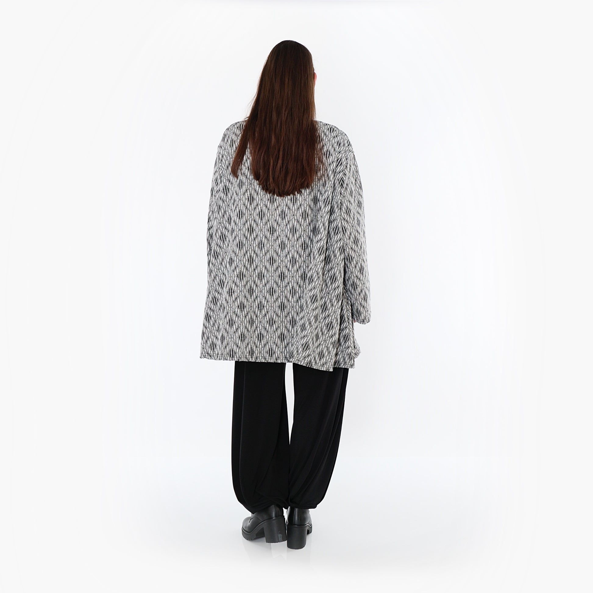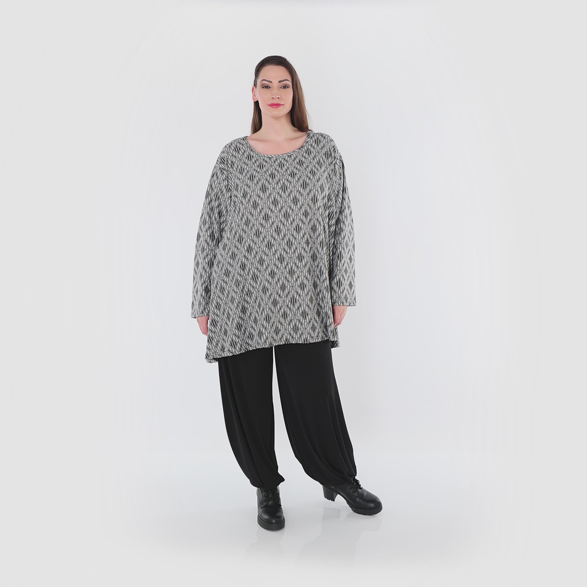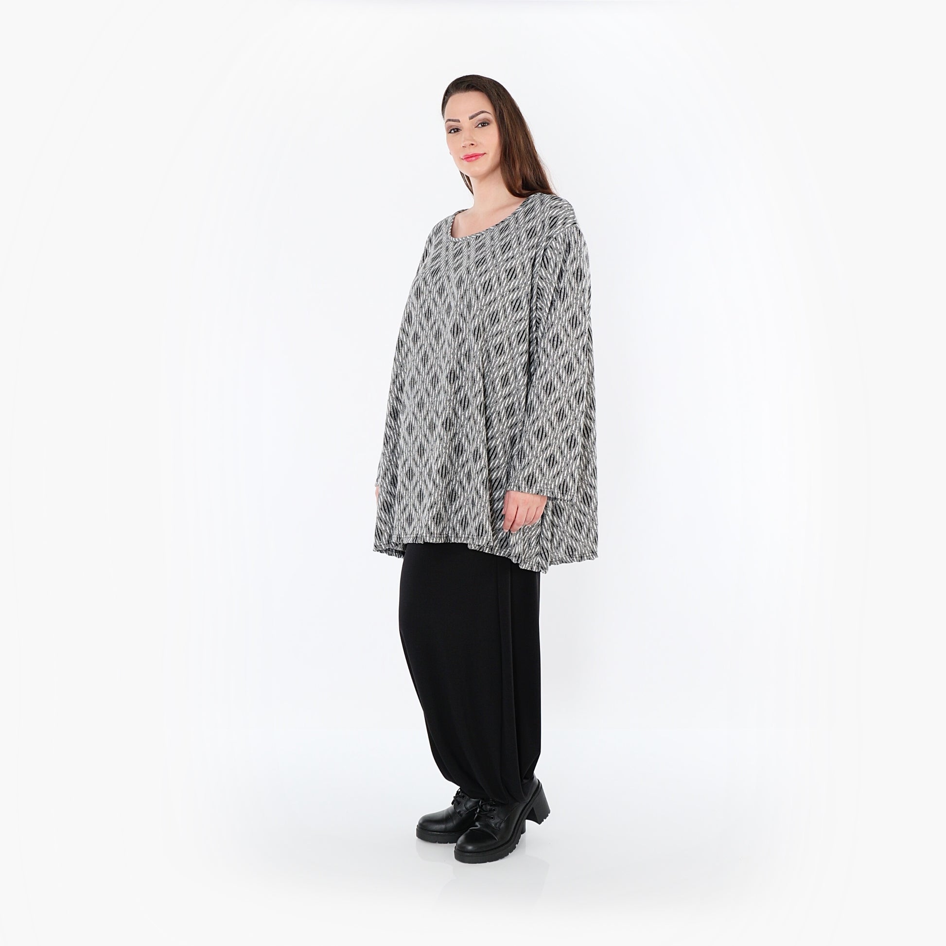 Fit & Feel – Fluid drape with gentle stretch for everyday comfort. Designed as one size to fit up to UK 24, this is often worn in an oversized or layered look. Made in Italy, machine washable at 30 °C for easy care.