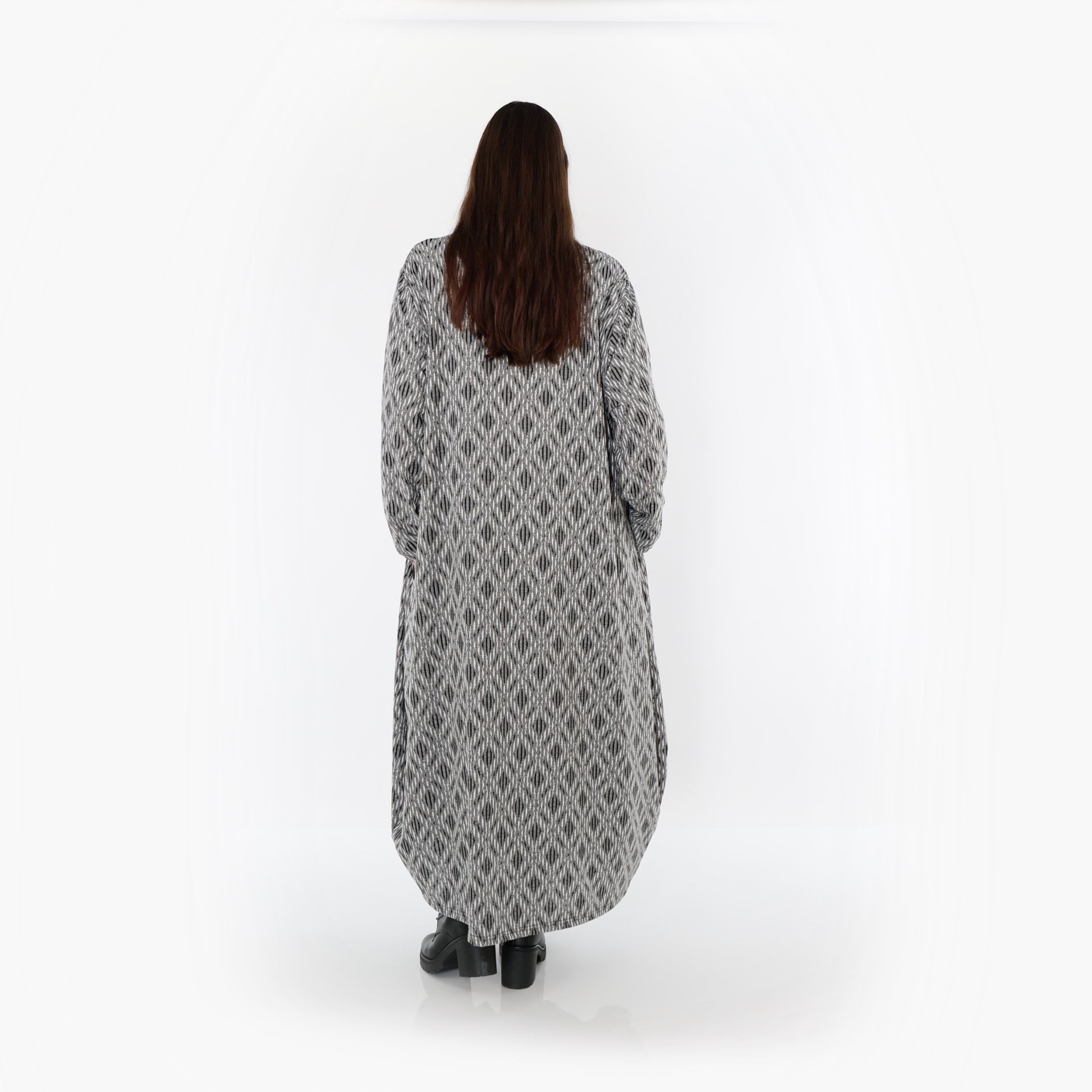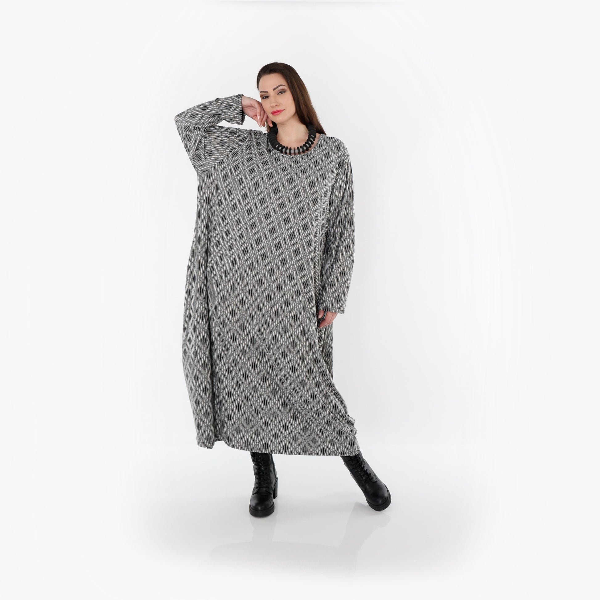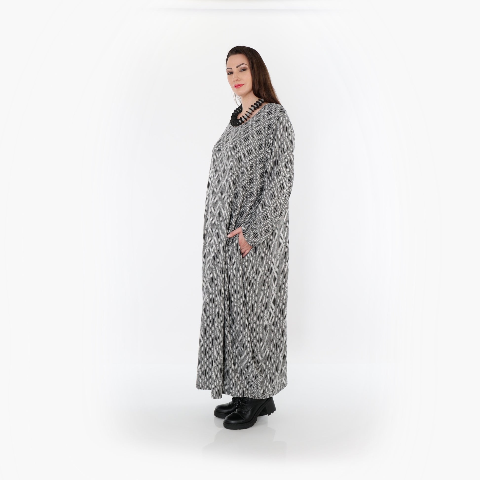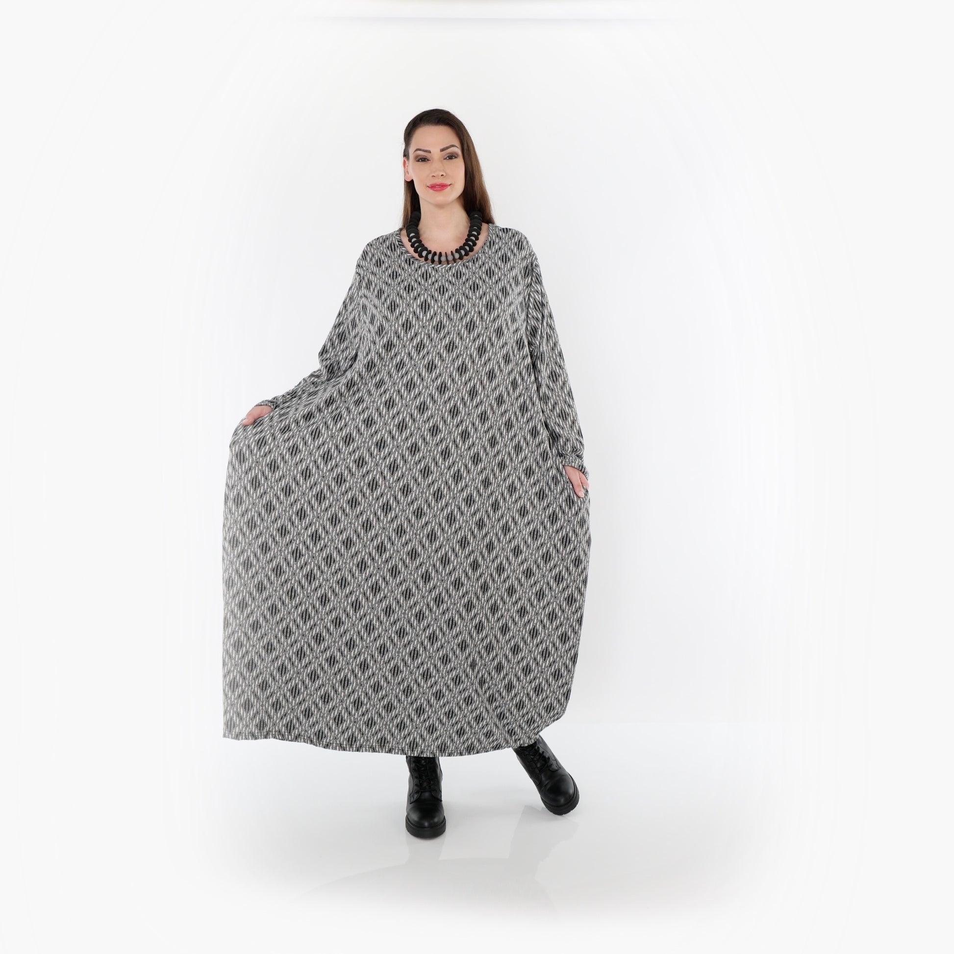 A dress in Light grey with black and white accents for a soft, fluid feel. The vichy stripes lends a refined, fashion-forward finish. The balloon silhouette drapes beautifully for everyday ease.