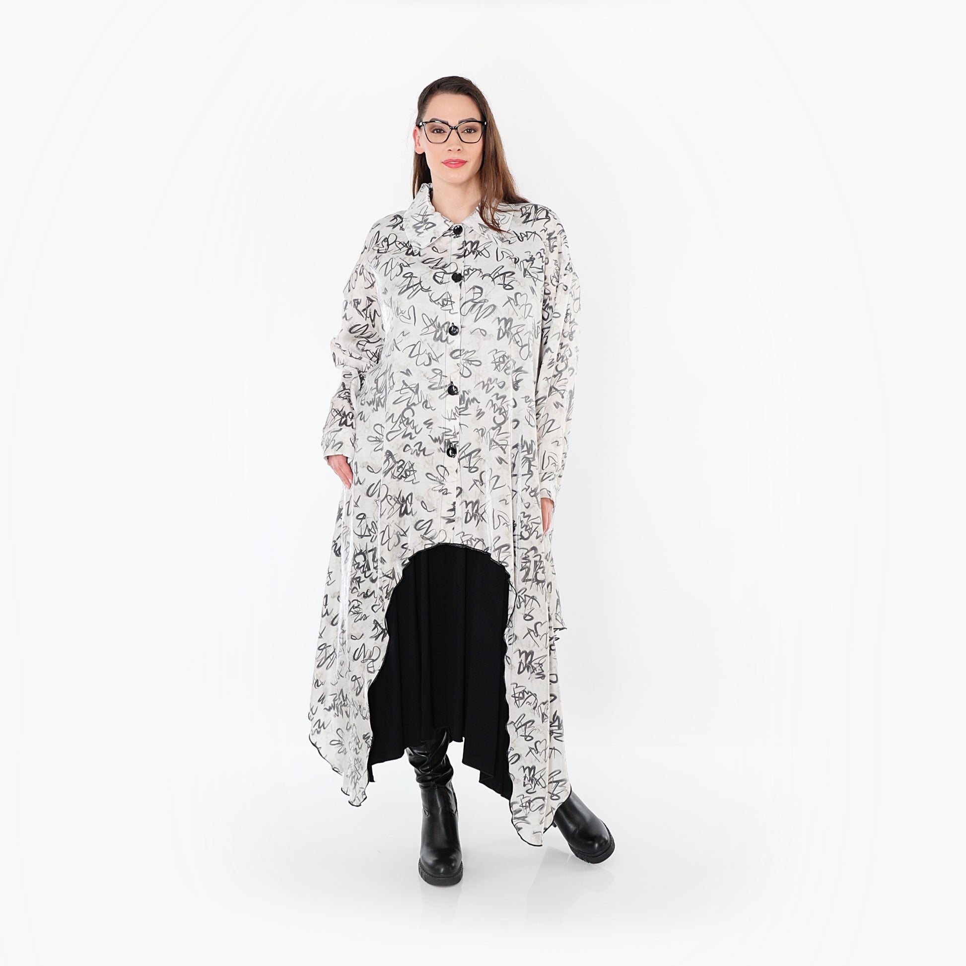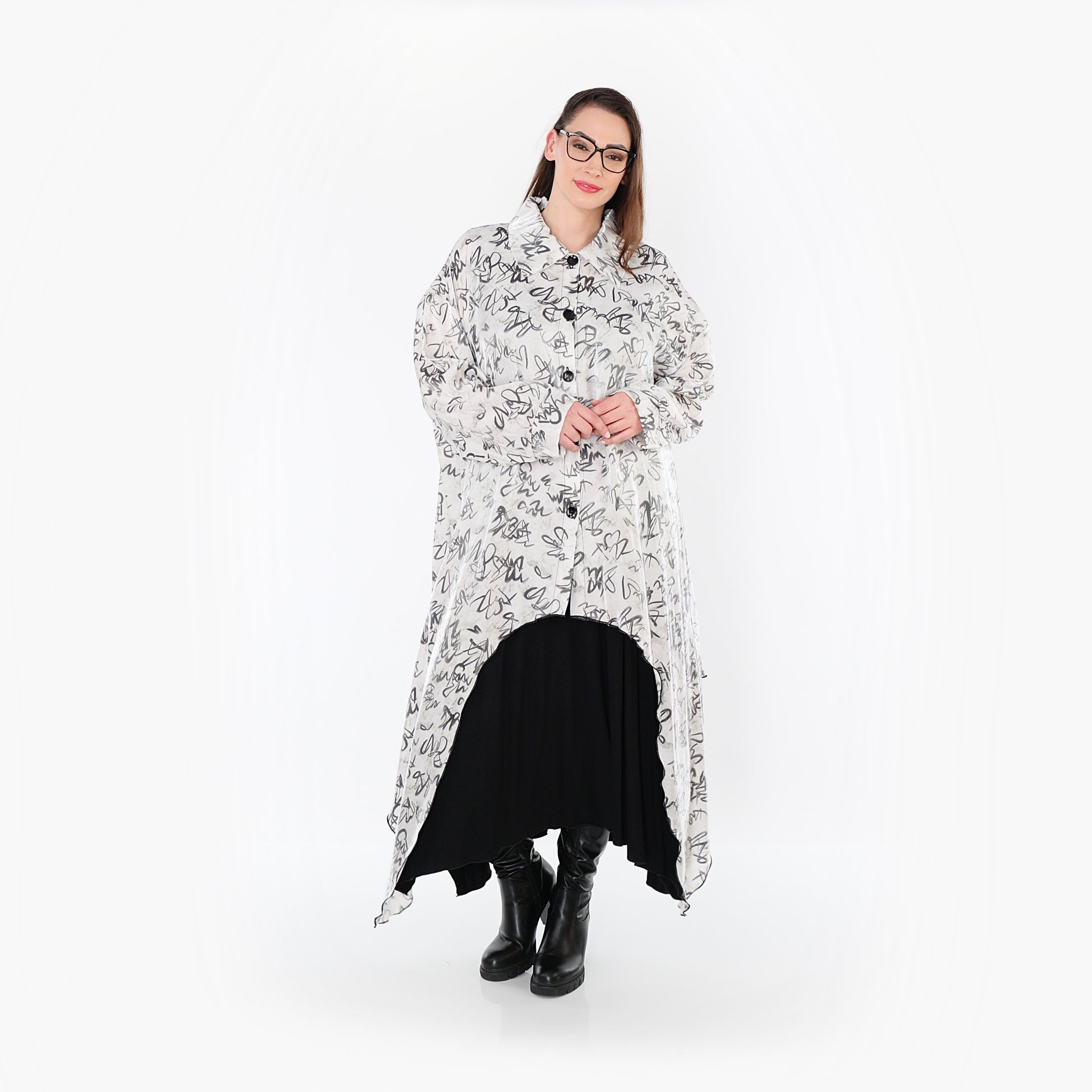 A blouse in White with grey accents for a soft, fluid feel. The squiggle print lends a refined, fashion-forward finish. The silhouette drapes beautifully for everyday ease.