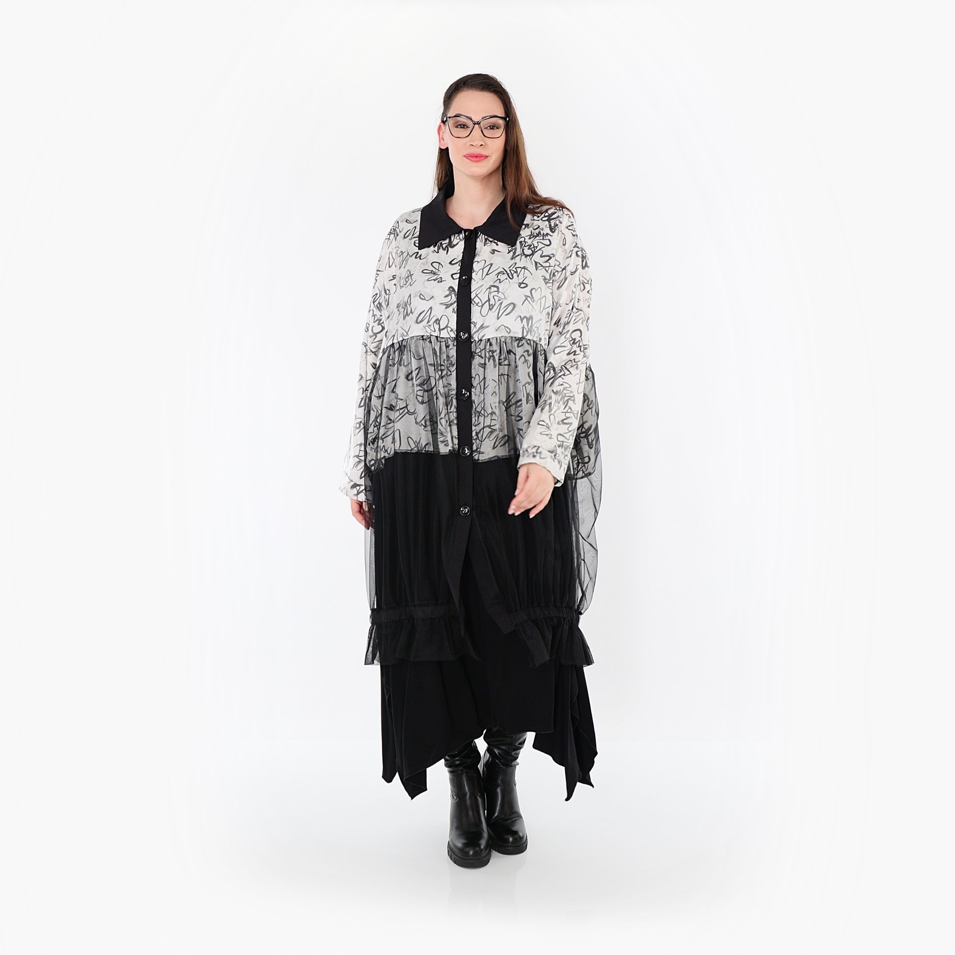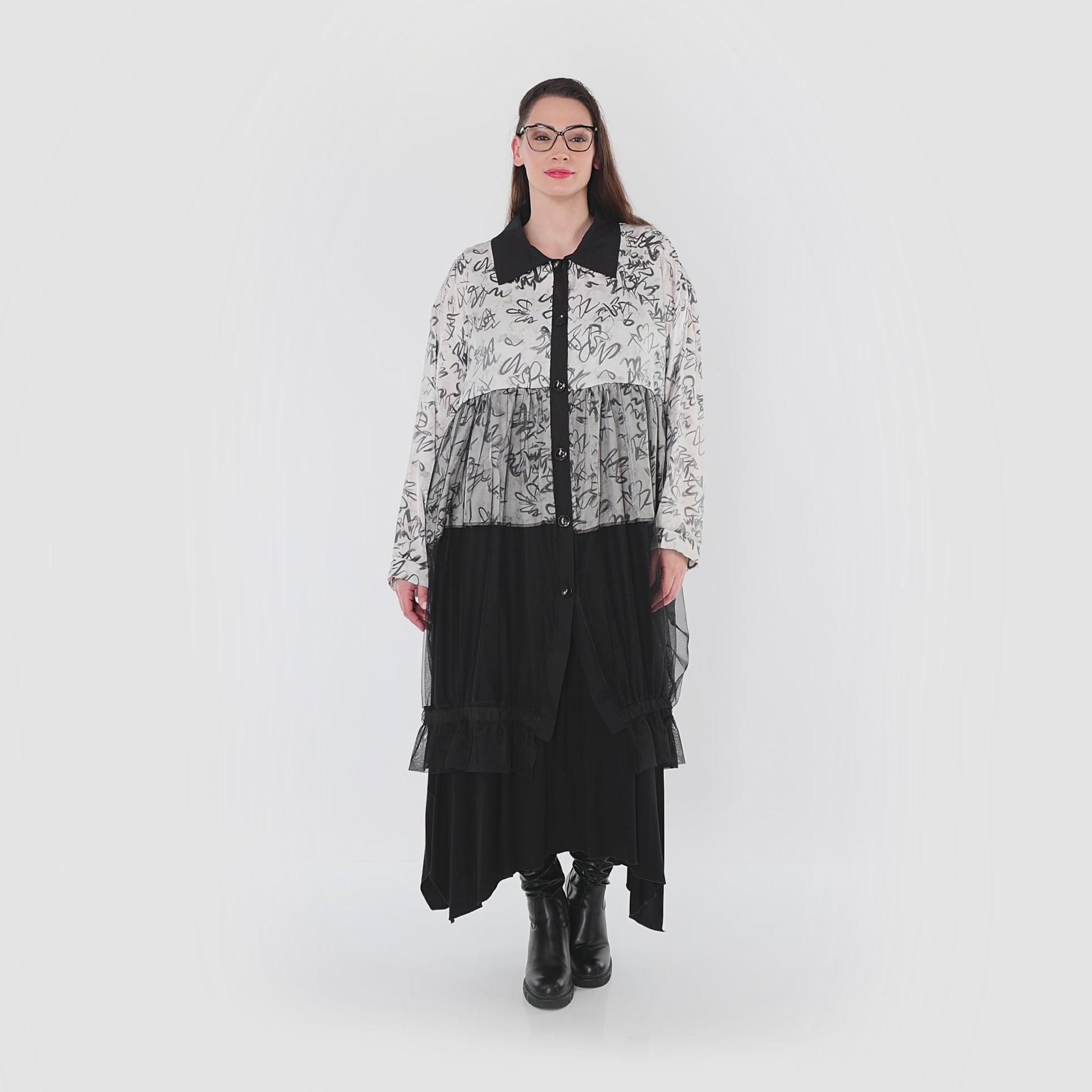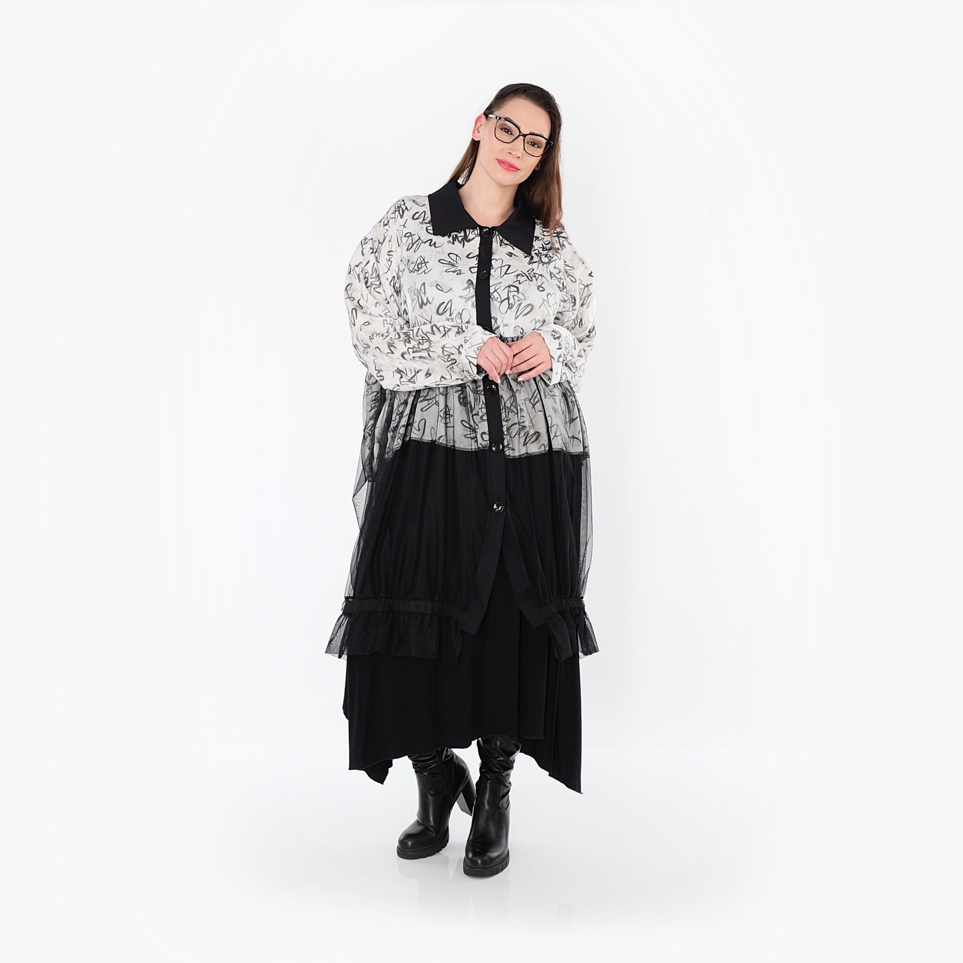 A blouse in White with grey accents for a soft, fluid feel. The squiggle print lends a refined, fashion-forward finish. The straight silhouette drapes beautifully for everyday ease.