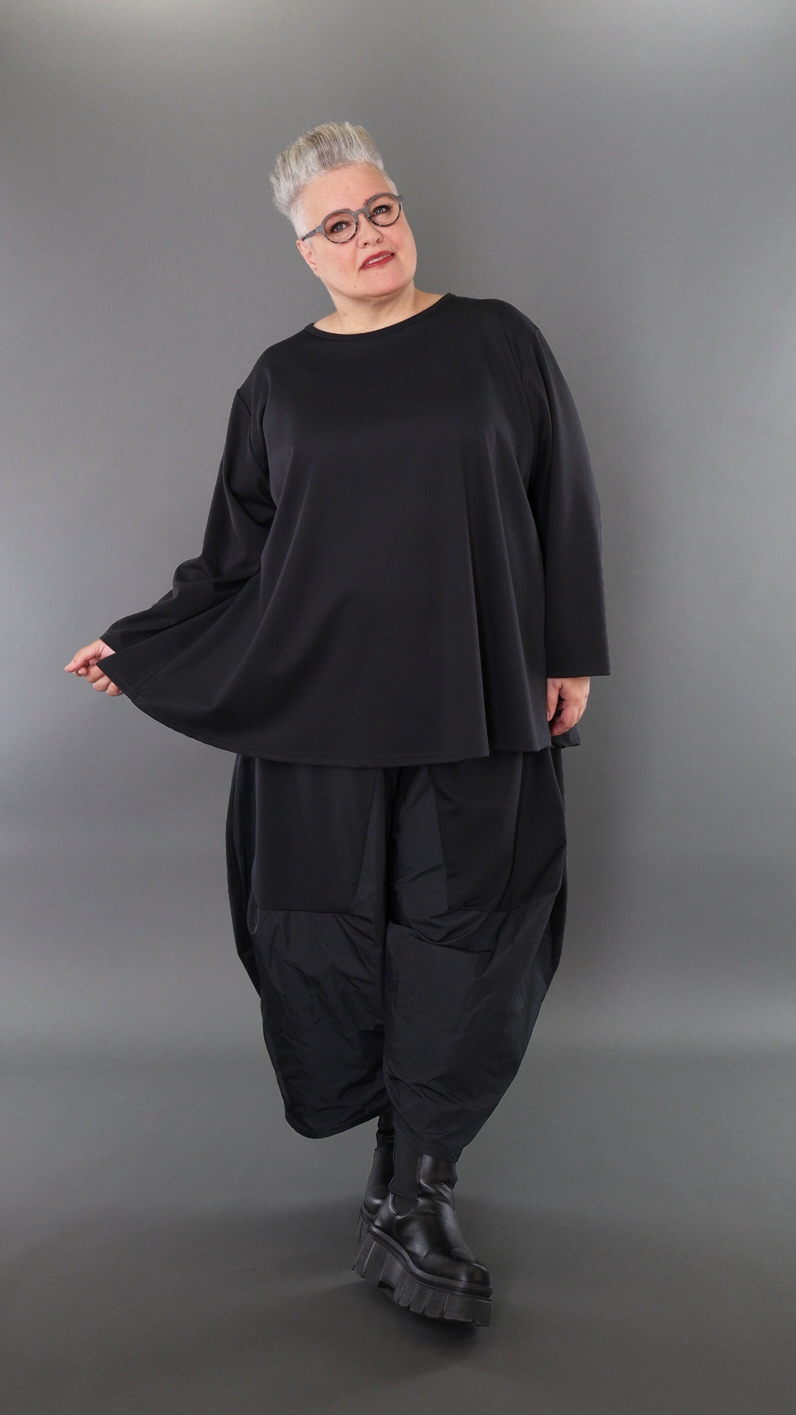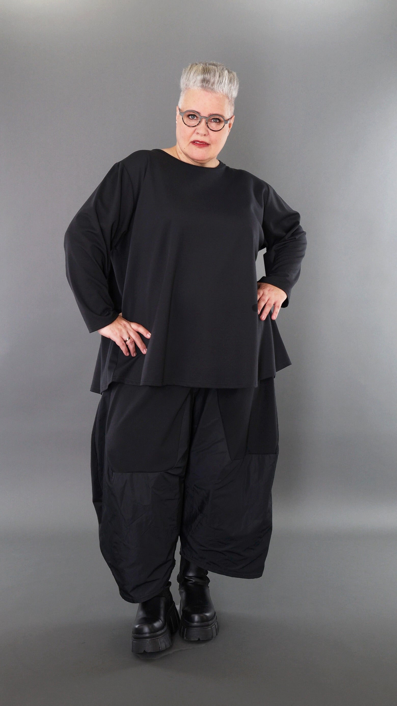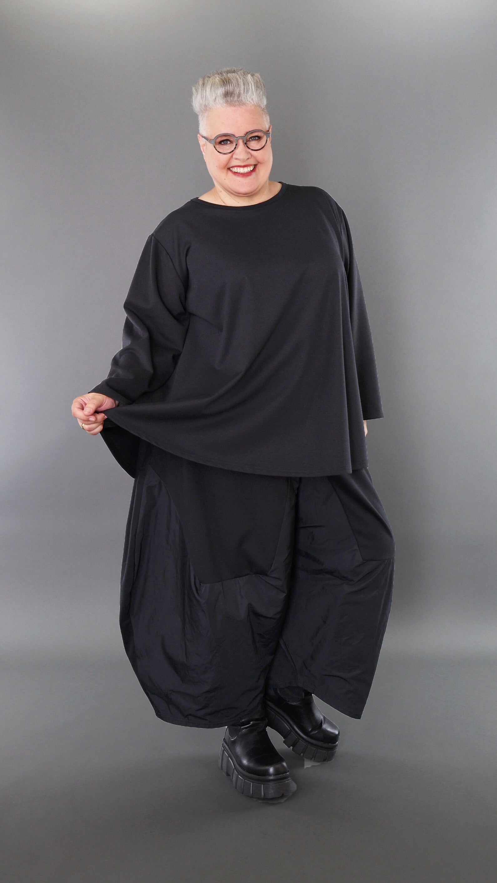 Worn by our model Regina (UK 20-24, 166cm) who can easily wear almost all AKH styles in an oversized style.