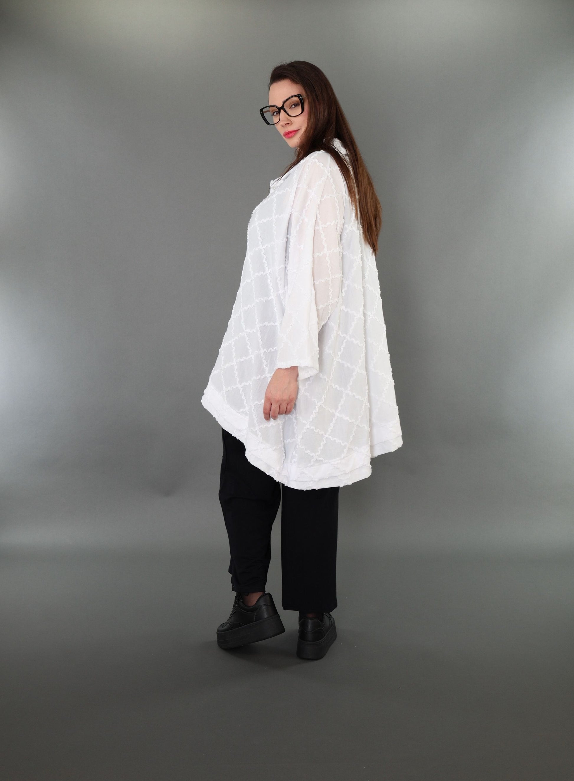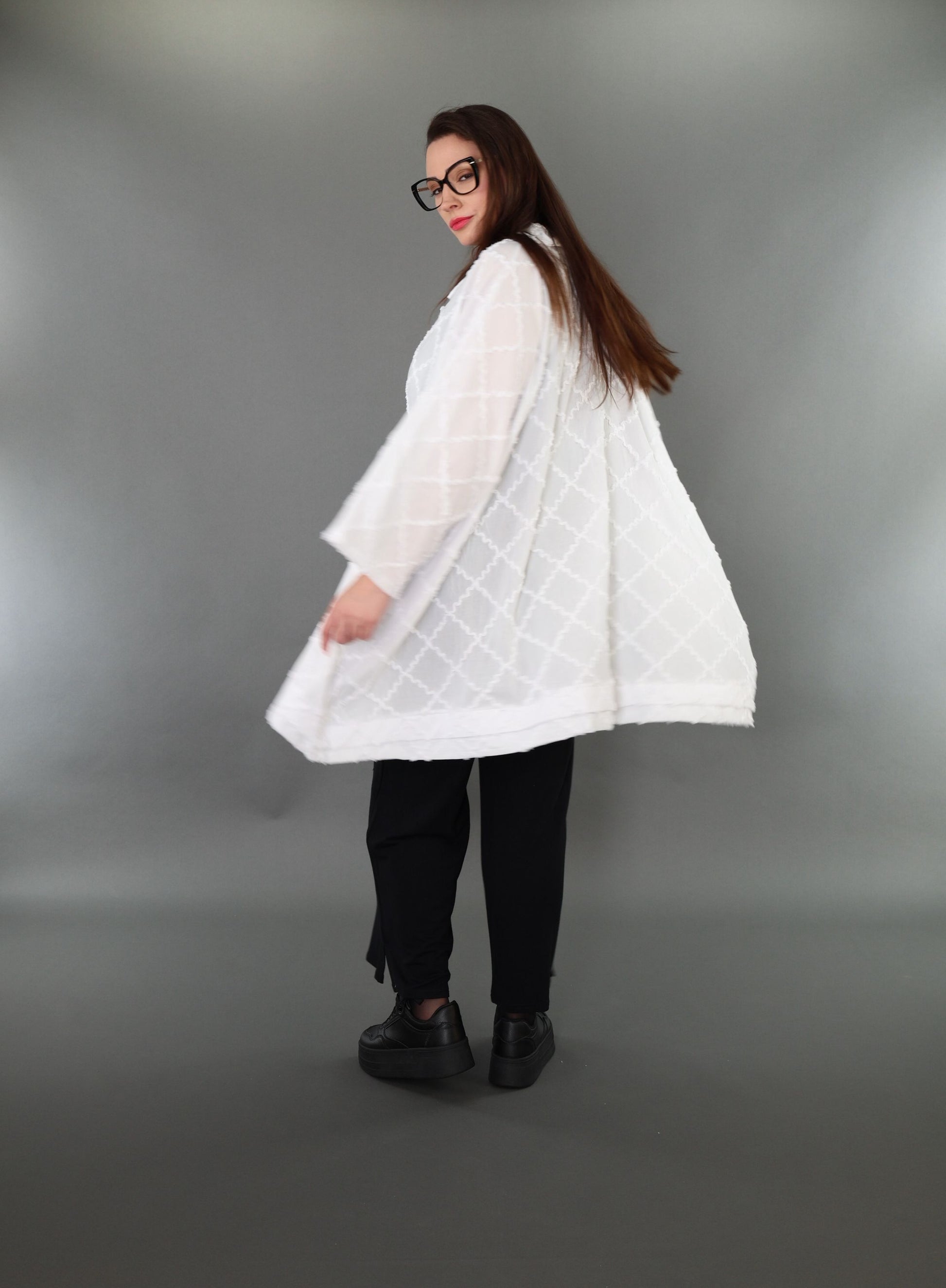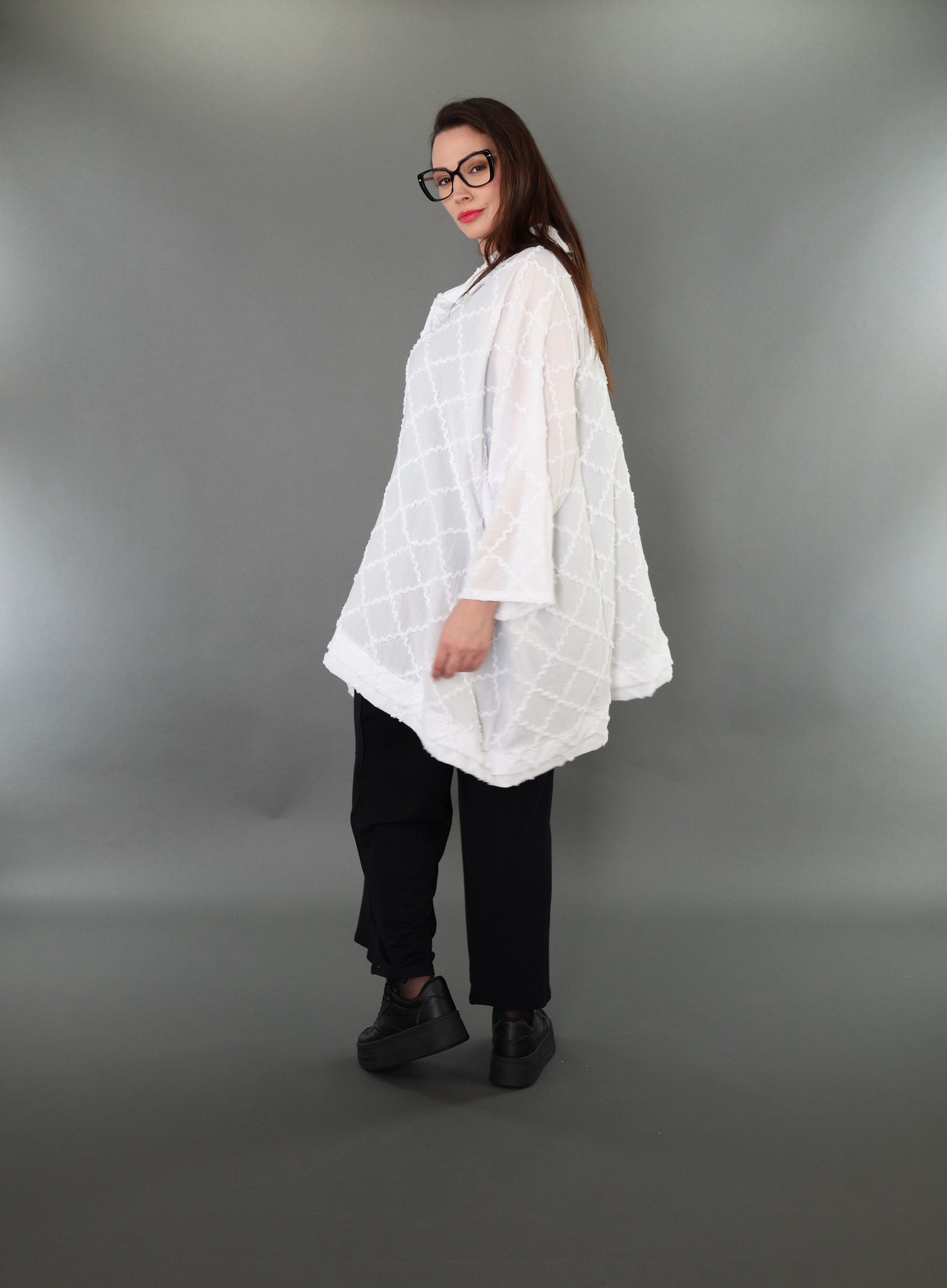 Size: One size fits all, wearable up to size 68. Total length: 89 cm. Half bust: 103 cm. Sleeve length: long sleeves.