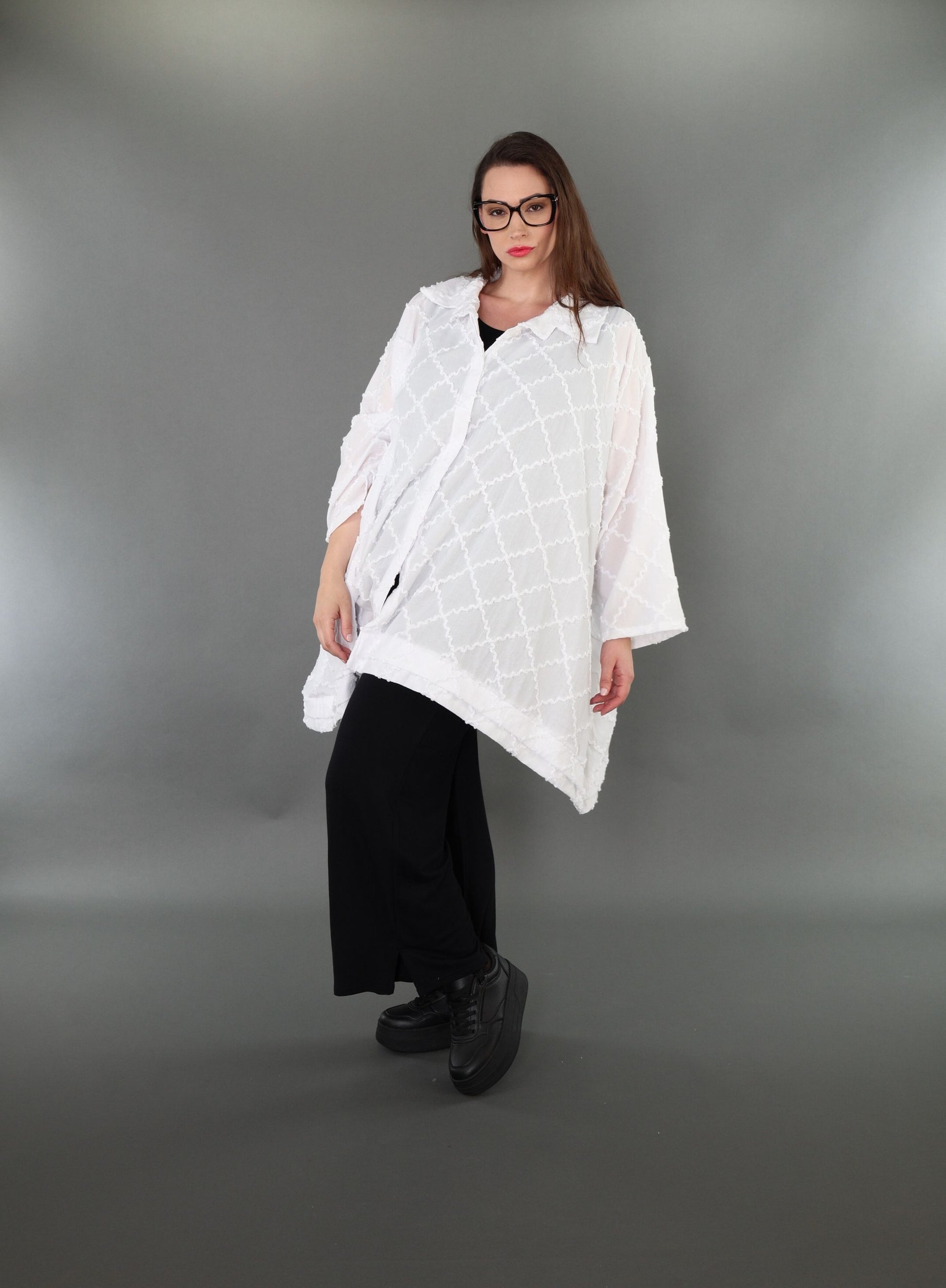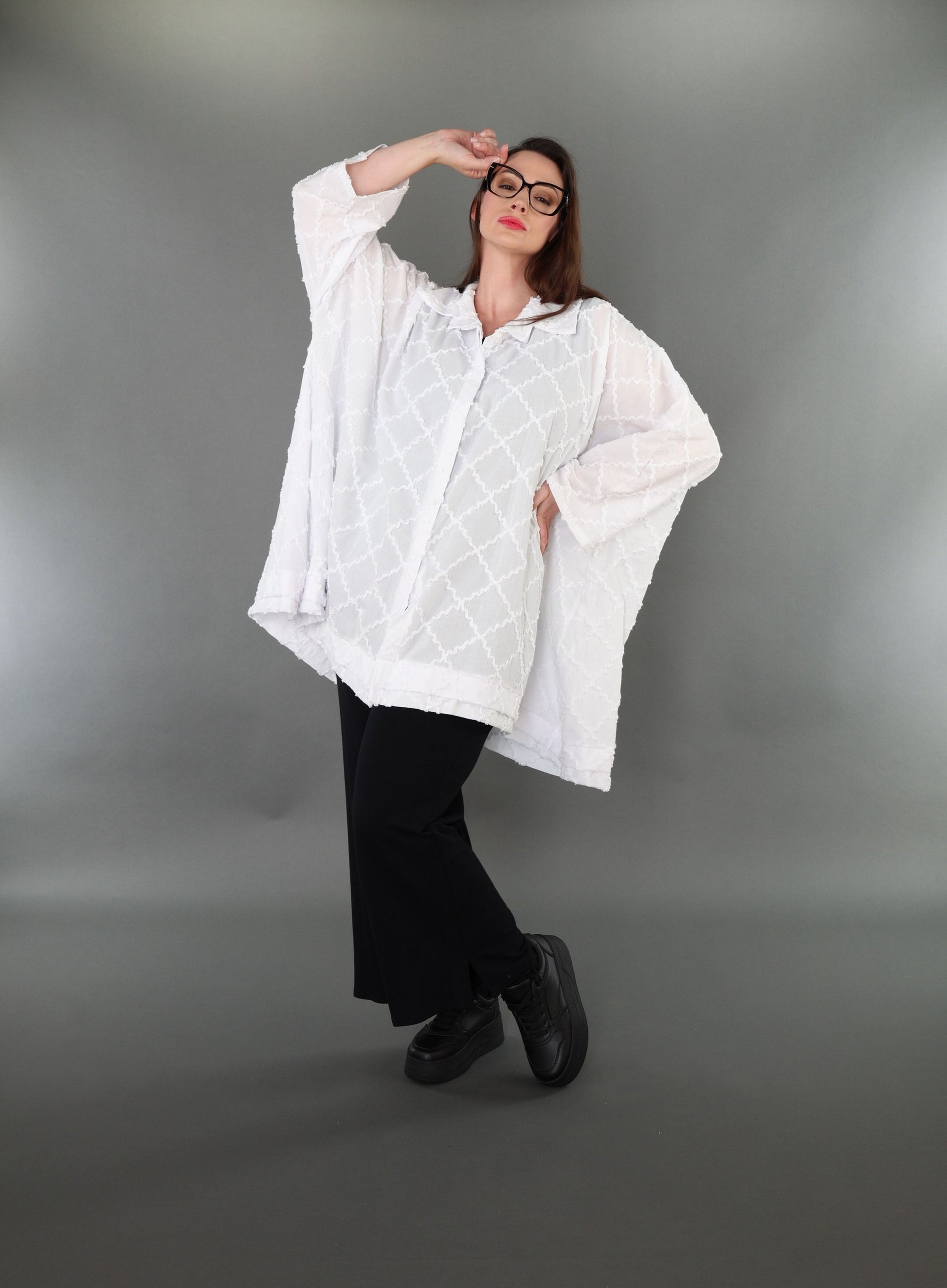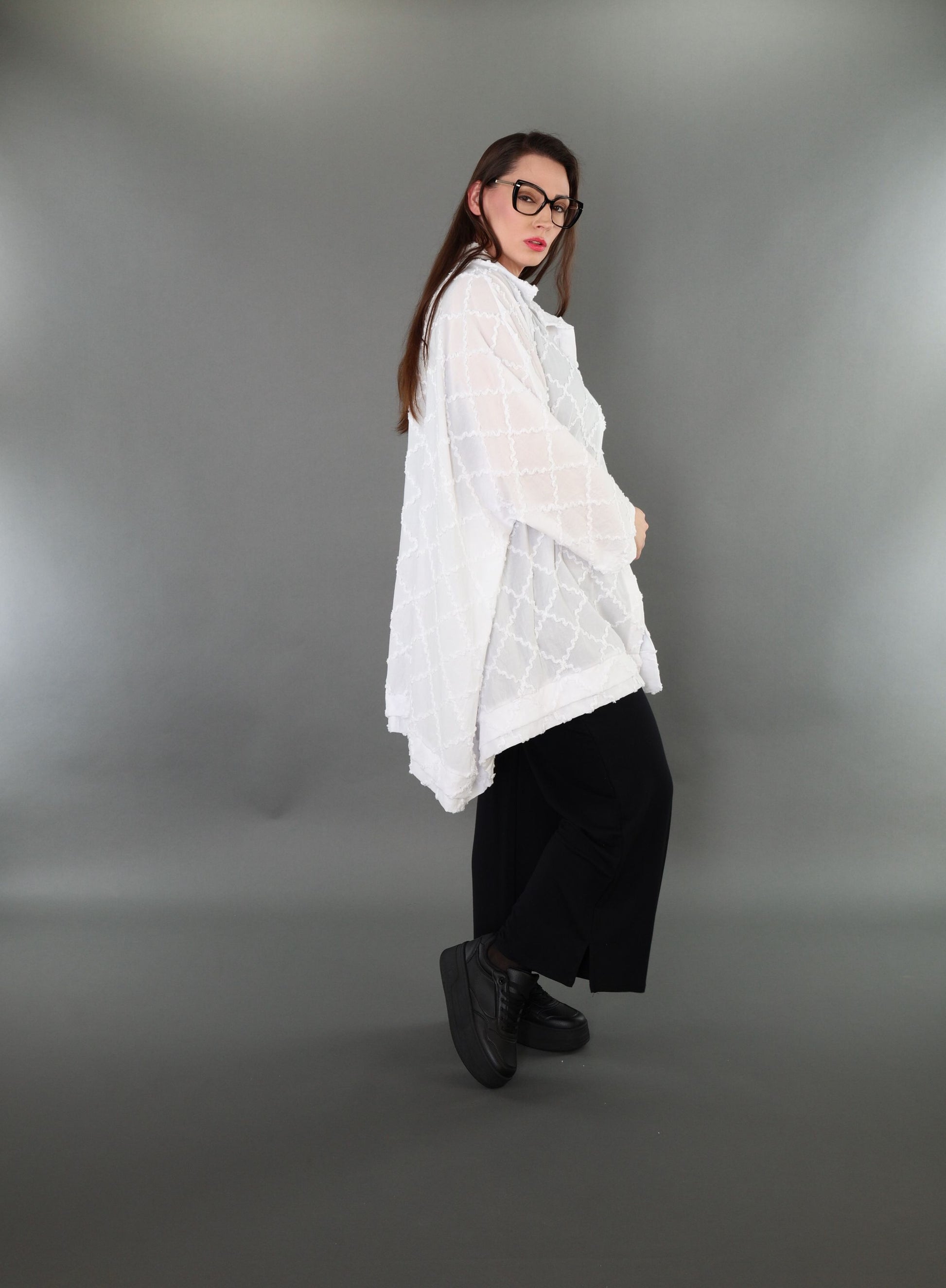 Size: One size fits all, wearable up to size 68. Total length: 89 cm. Half bust: 103 cm. Sleeve length: long sleeves.