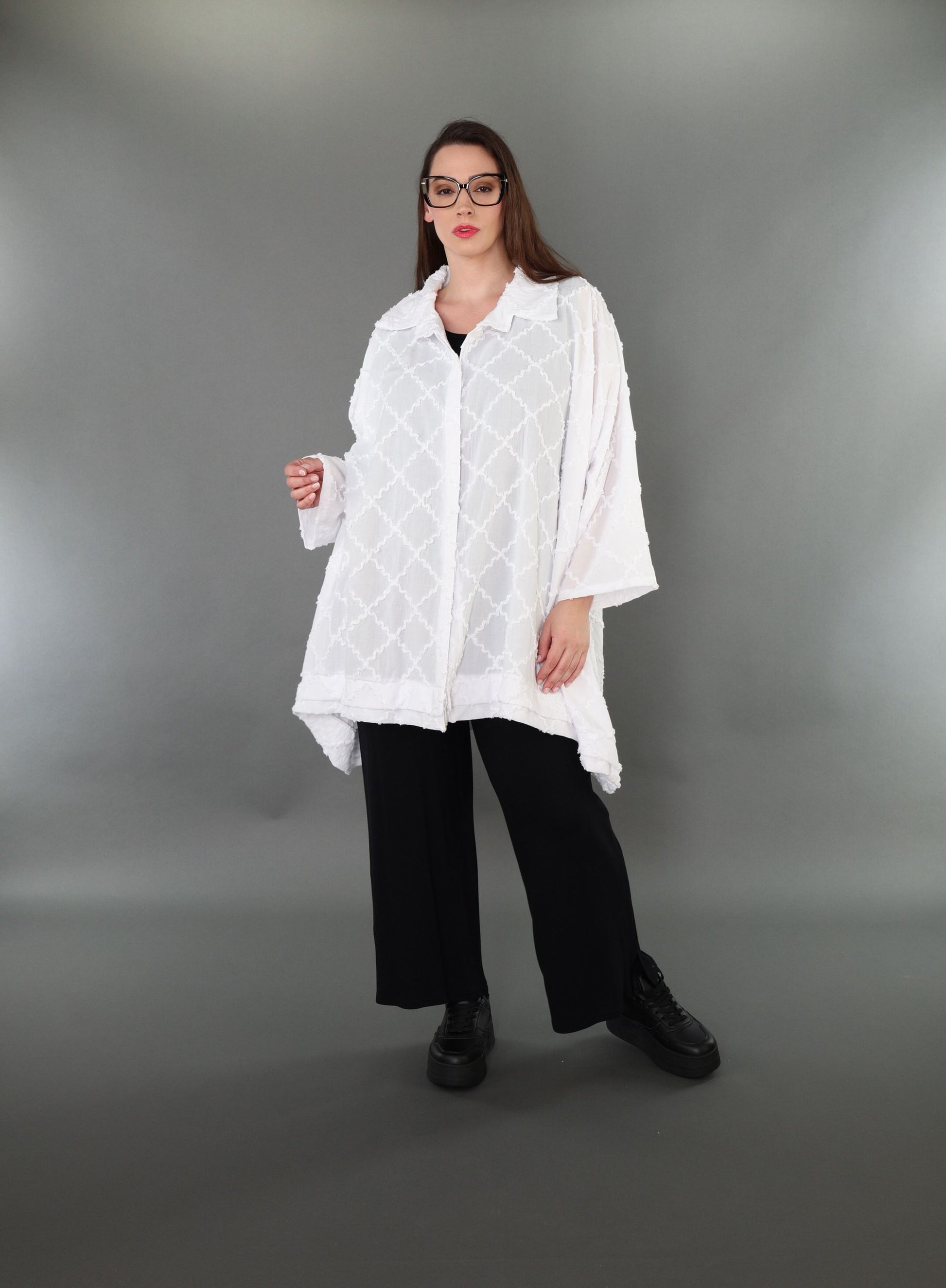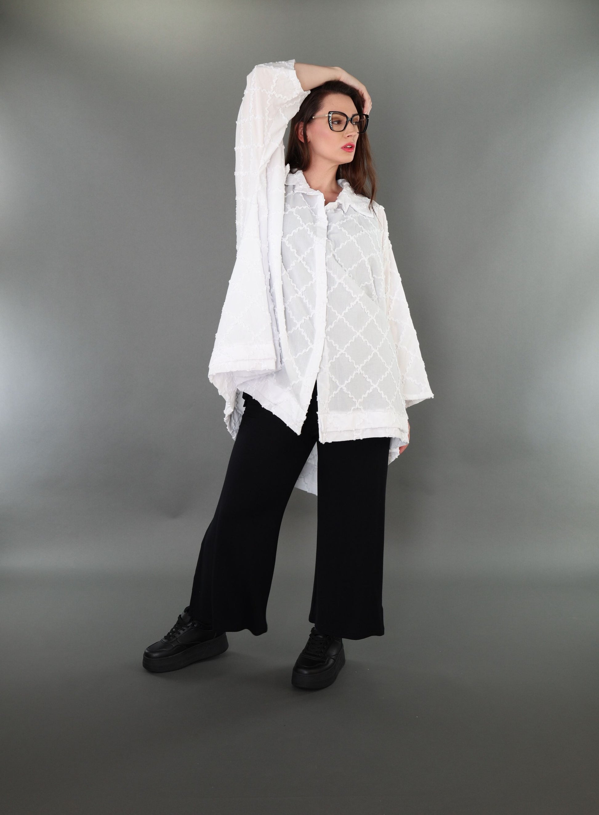 Worn by our model Regina (UK 20-24, 166cm) who can easily wear almost all AKH styles in an oversized style.