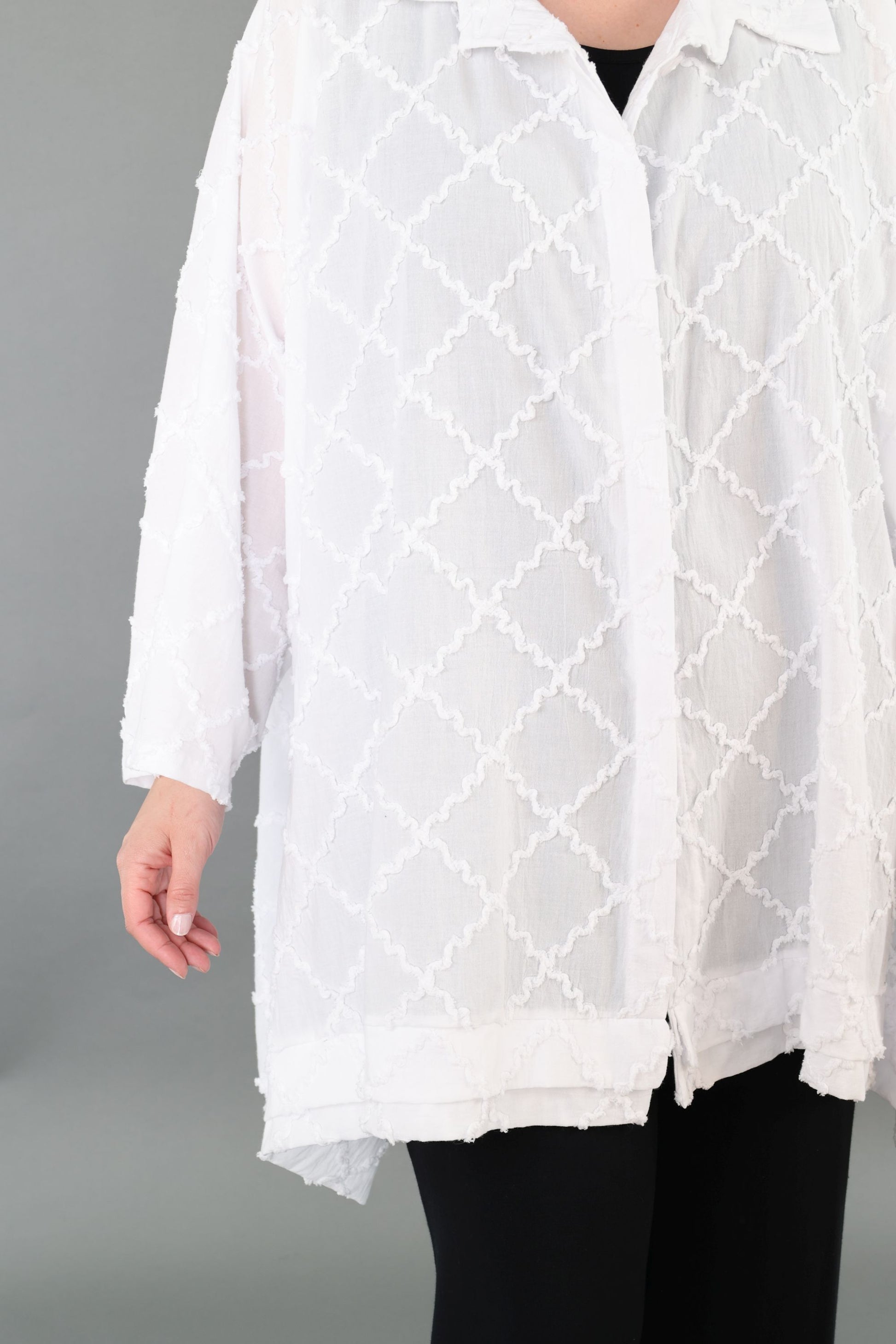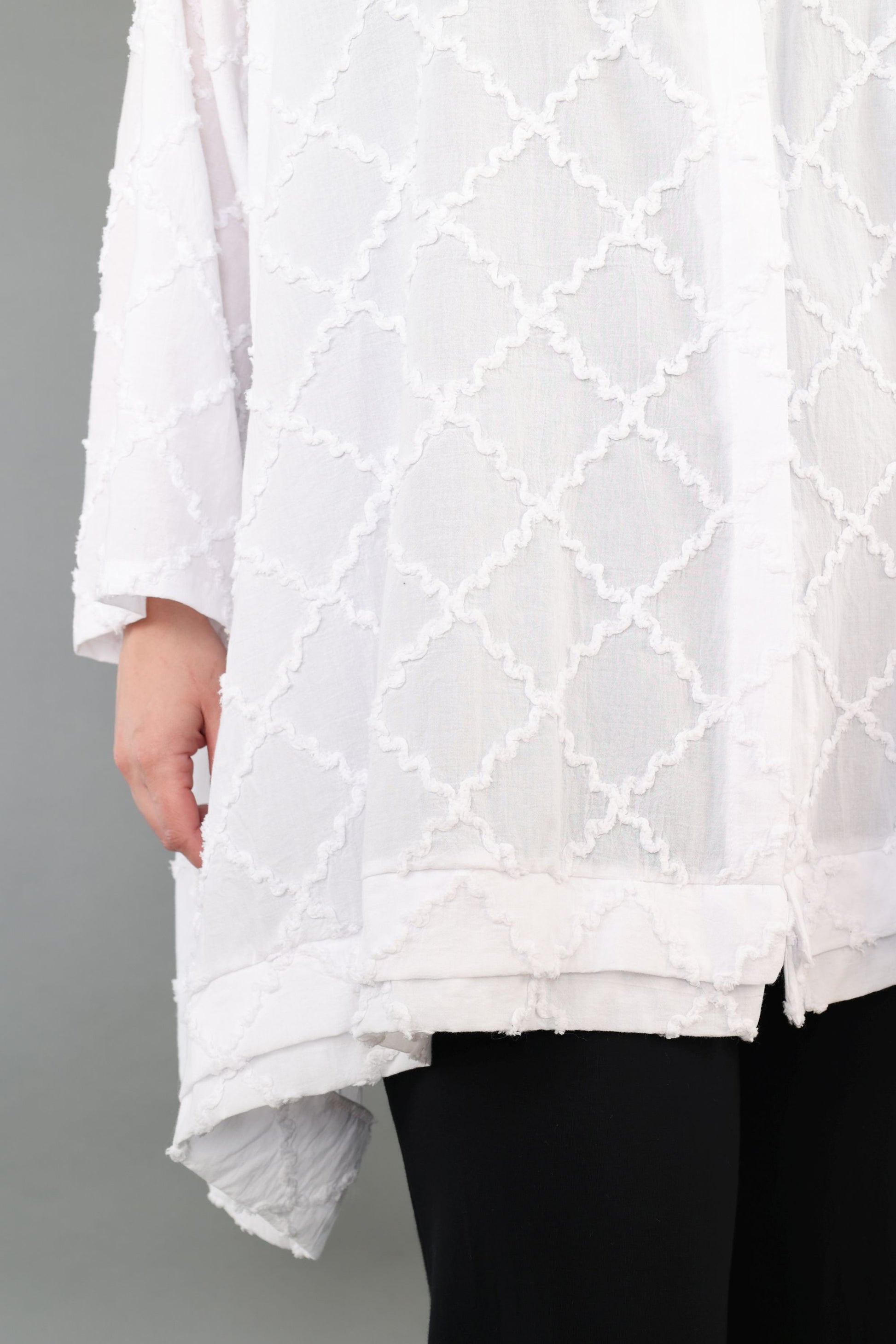 Fit & Feel – Fluid drape with gentle stretch for everyday comfort. Designed as one size to fit up to UK 24, this is often worn in an oversized or layered look. Made in Italy, machine washable at 30 °C for easy care.